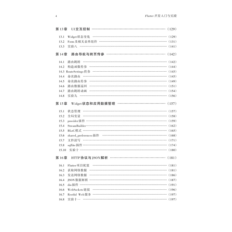 Flutter是Google推出并开源的移动应用开发框架,主打跨平台、高保真、高性能。全书以一个完整的Flutter开发项目技术栈为主线,详细地介绍了Flutter SDK在各种平台的安装和配置方法;详细介绍了Flutter开发语言Dart编程基础,包括变量、类型、流程控制、函数、运算符、异常、类、泛型、库、异步和注释等知识要点。详细介绍与分析了Flutter Widget布局构建原理、UI交互控制方法,路由导航与跨页传参方法,各种常见Widget状态和应用数据管理方法,以及Flutter框架HTTP协议和JSON解析等核心网络通信概念,最后阐述了Flutter应用发布的流程。