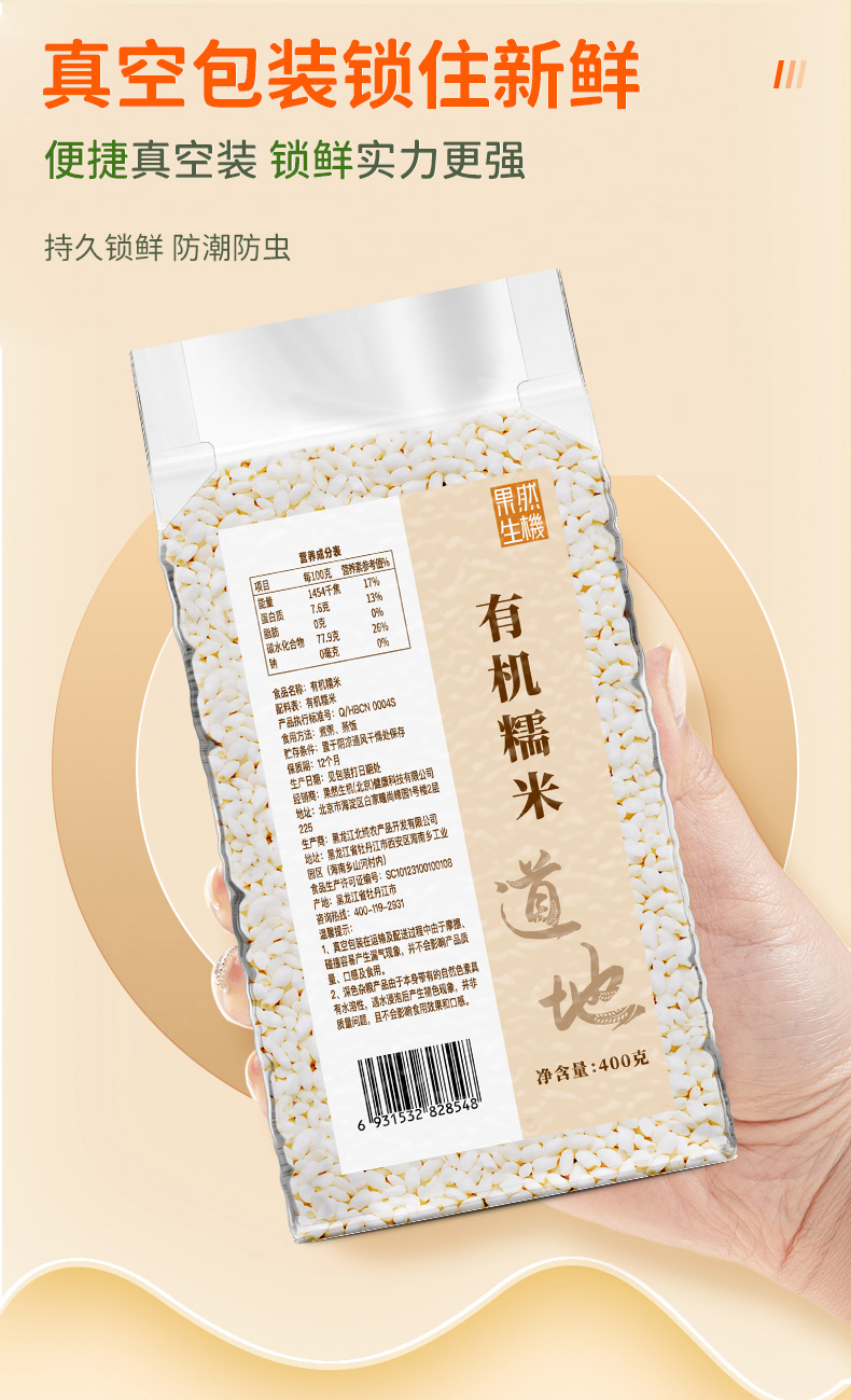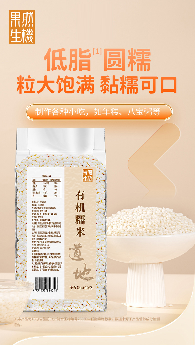 果然生机 道地有机糯米400g/袋