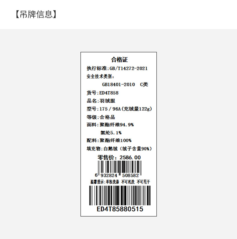 【鹅绒】乔万尼宽松拼接设计感保暖90白鹅绒羽绒服ED4T858