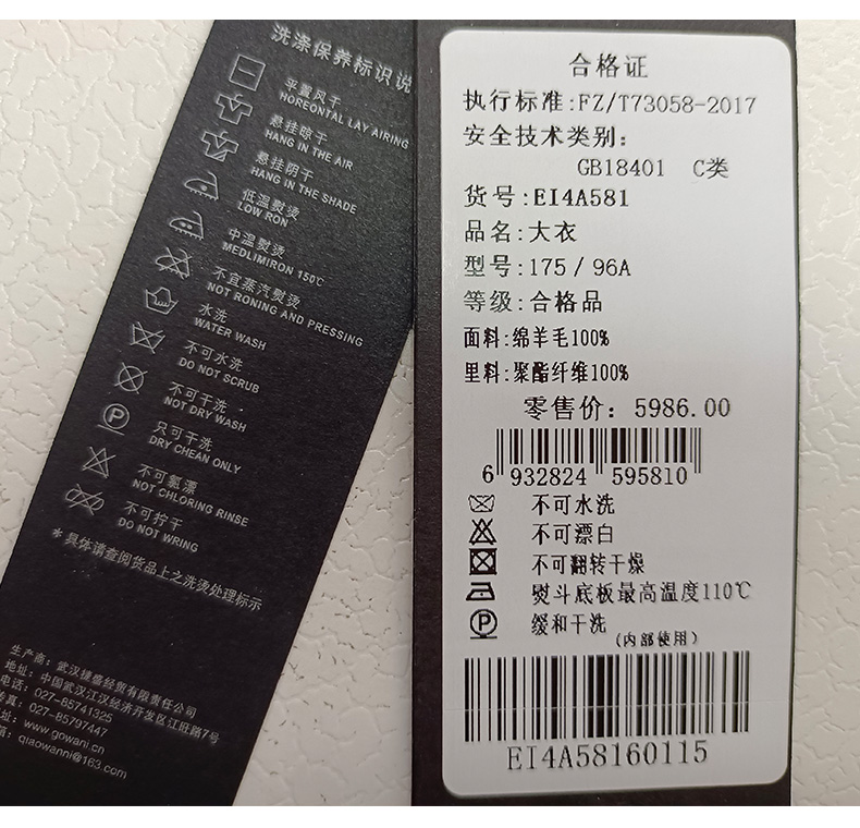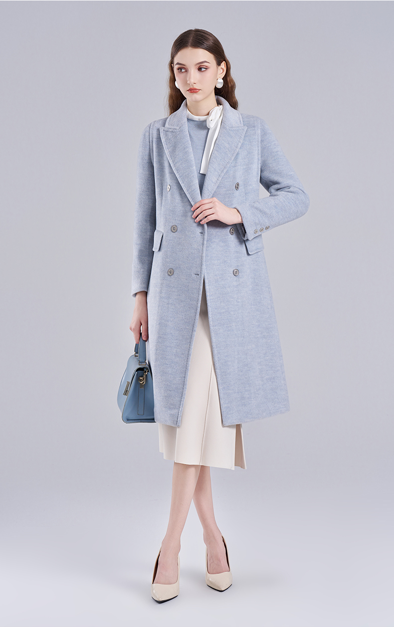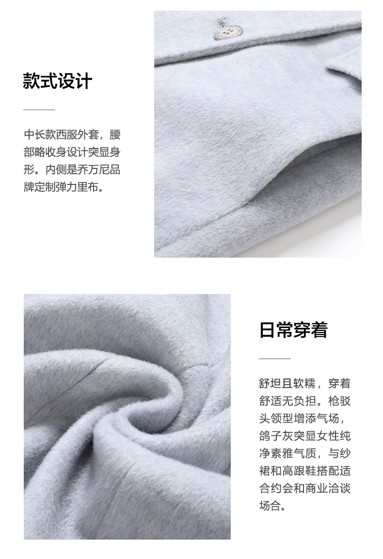 【100%绵羊毛】乔万尼新款双排扣简约百搭双面尼大衣EI4A581