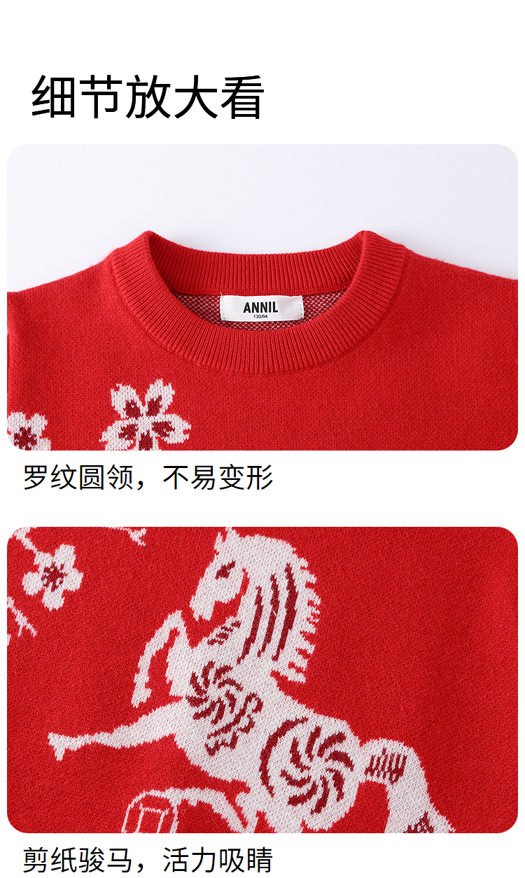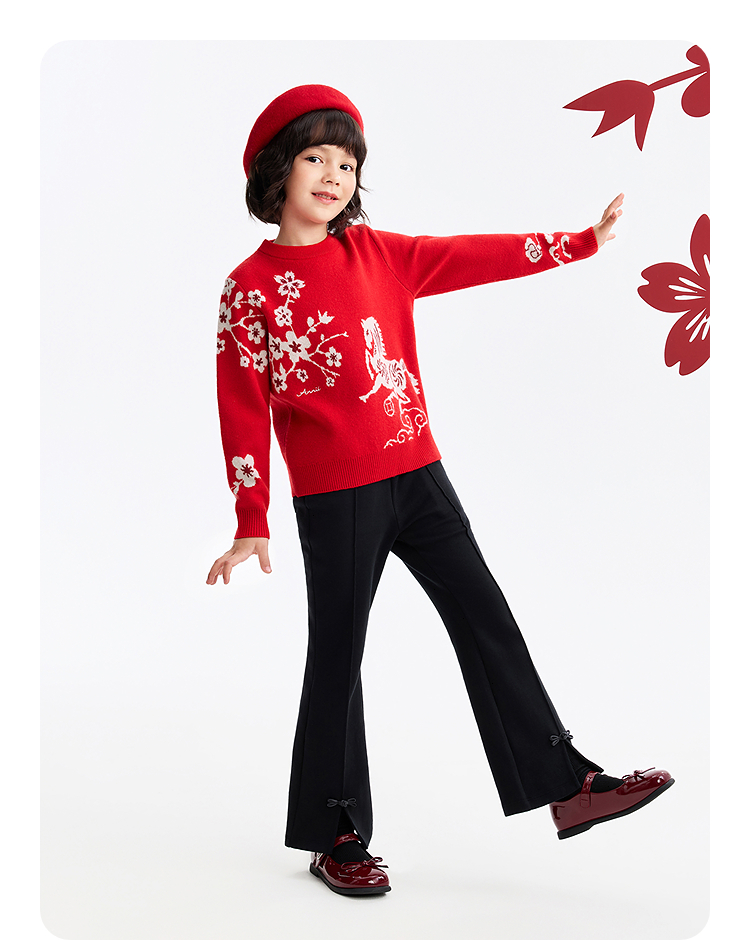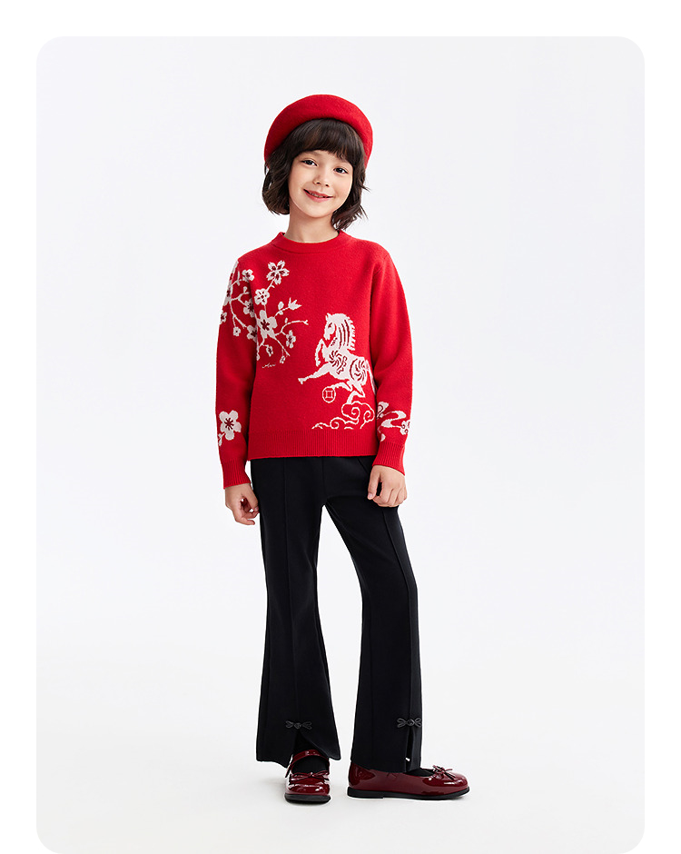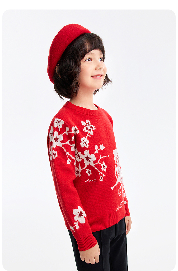 【新年波】女童圆领长袖针织衫春季新款安奈儿童装EG614505
