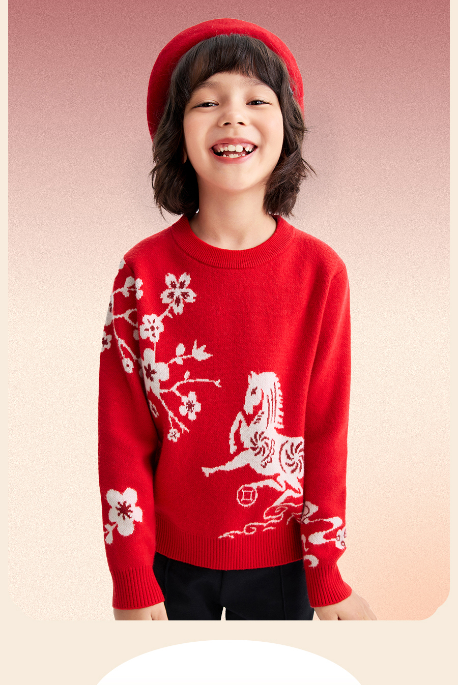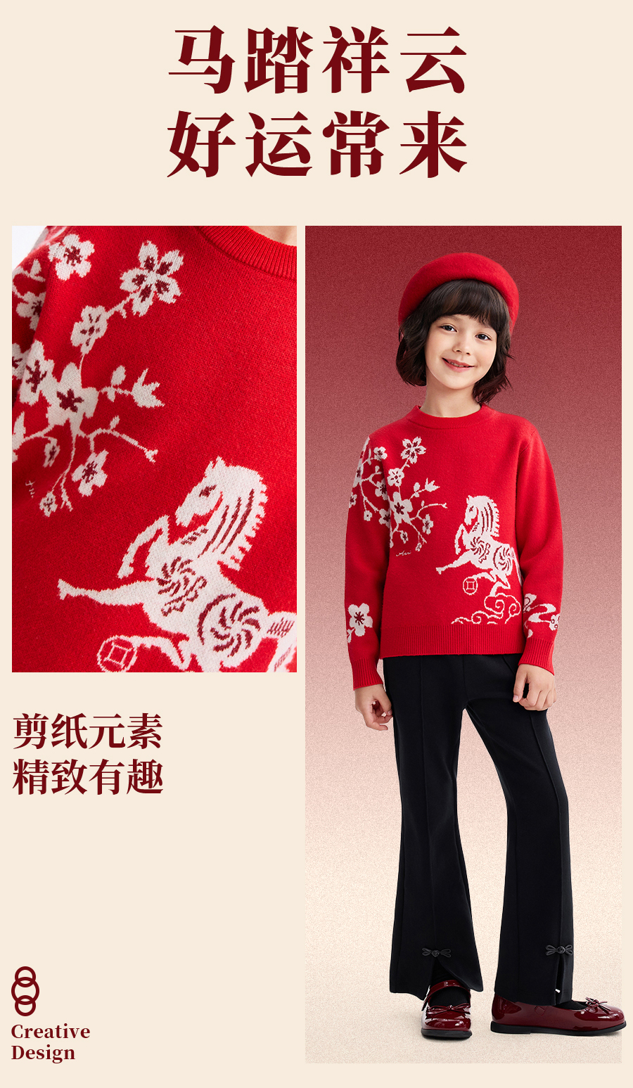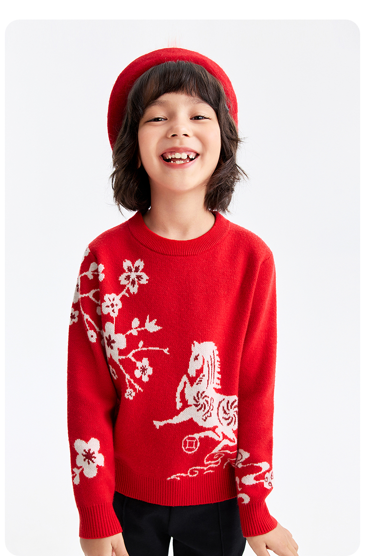 【新年波】女童圆领长袖针织衫春季新款安奈儿童装EG614505