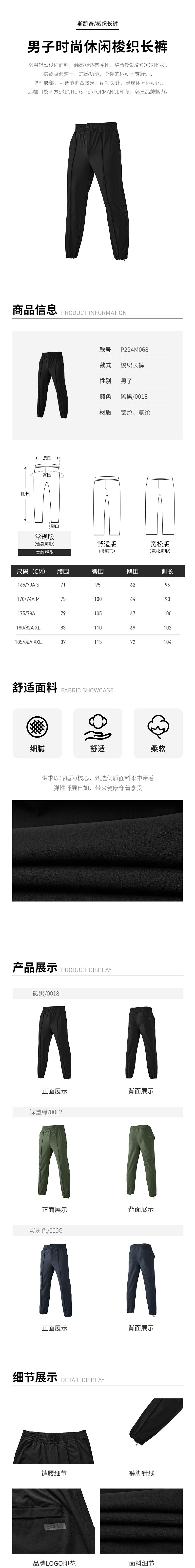 Skechers斯凯奇 男梭织长裤 P224M068-000G