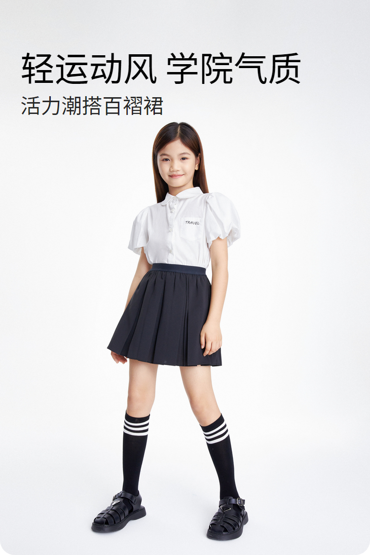 女童休闲运动学院风短裙夏季新款安奈儿童装EG423073