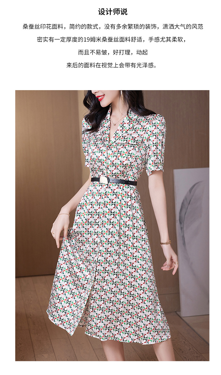丁摩 重磅真丝连衣裙女中长款新款高档时尚桑蚕丝5ZF-23002