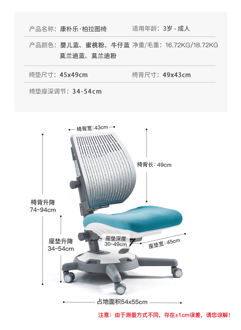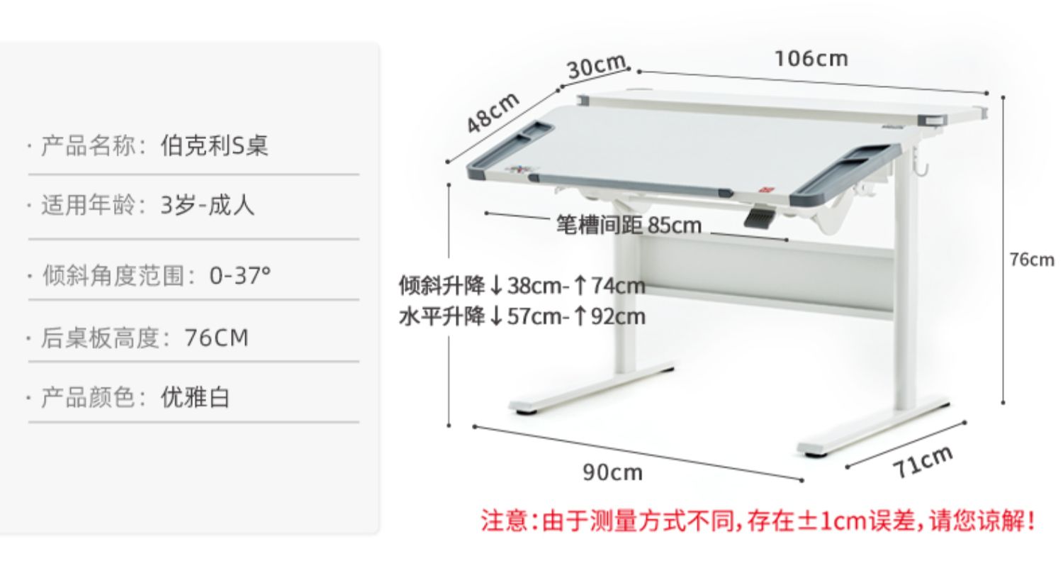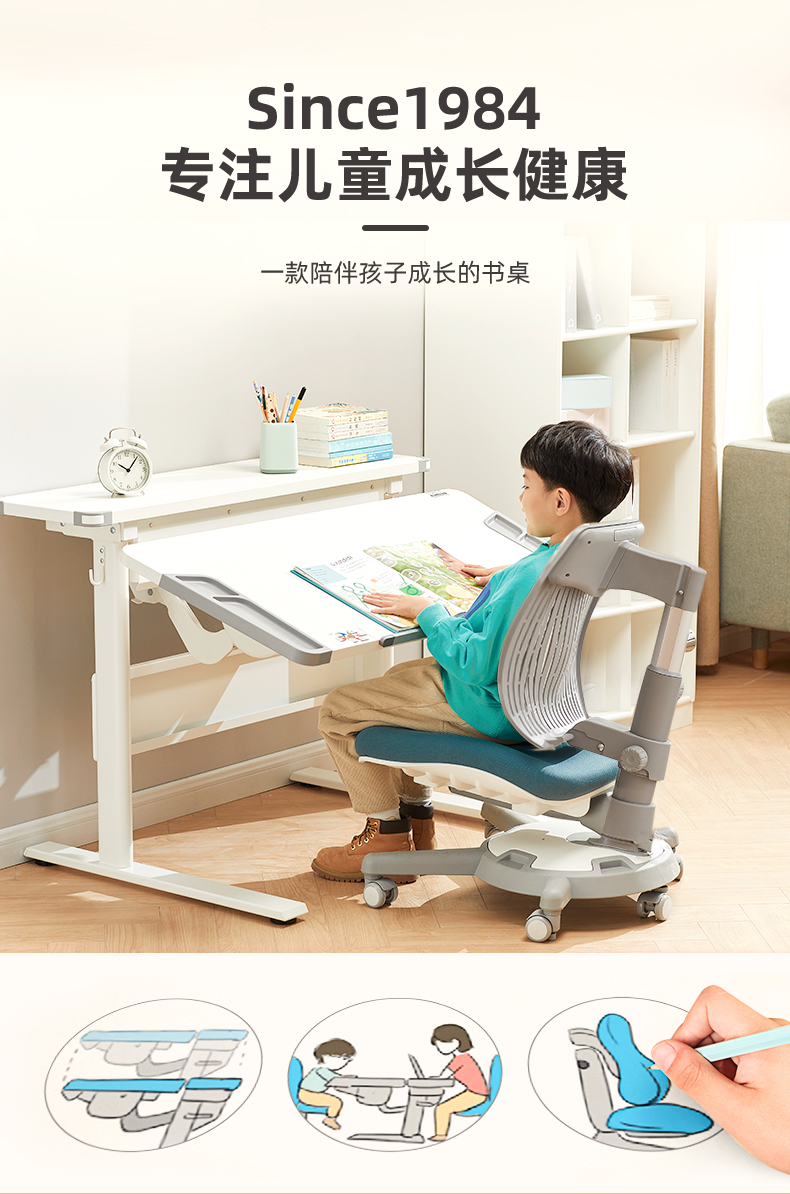 3岁+ 康朴乐气压棒升降学习桌| 伯克利s桌+柏拉图椅 套装 尺寸:106cm*80cm,送原装椅套