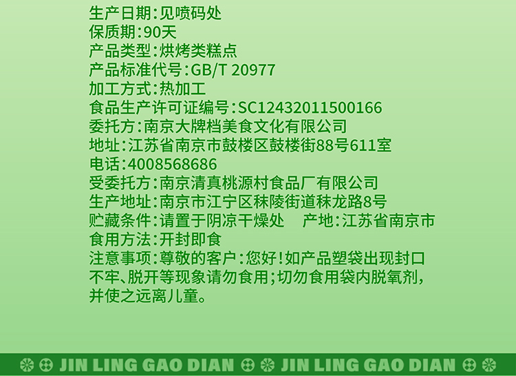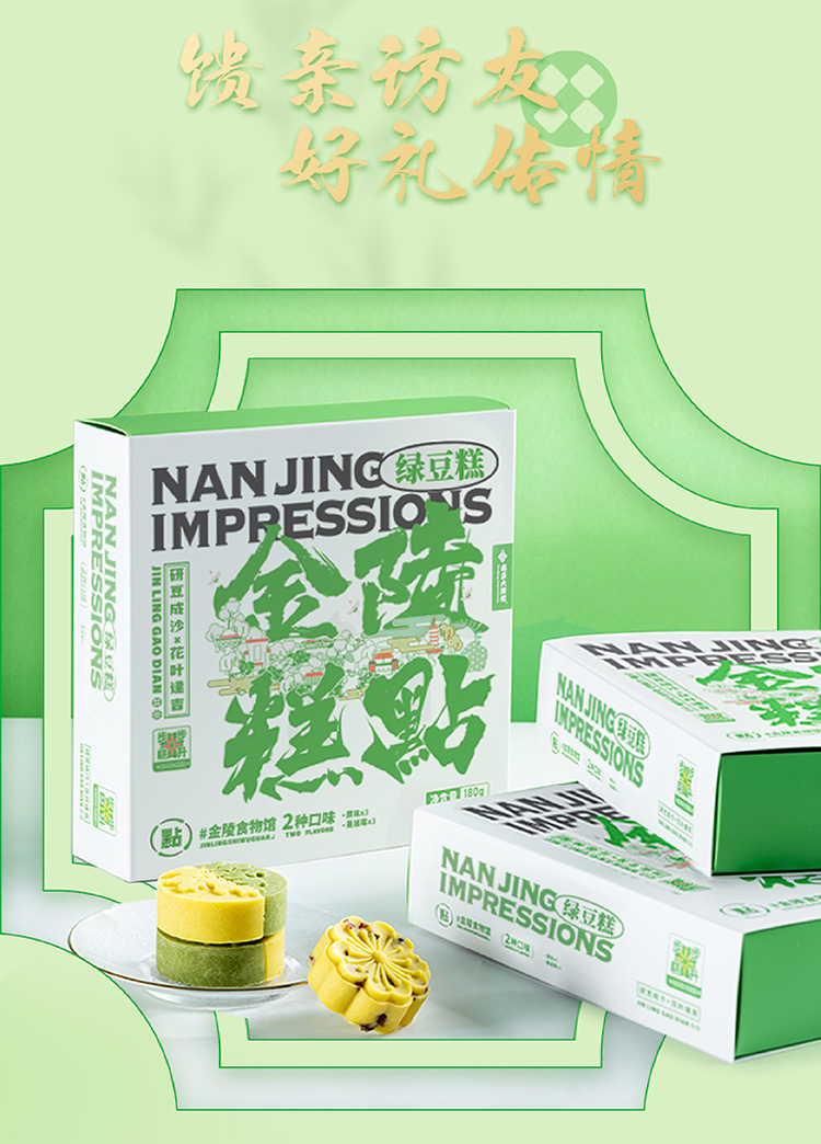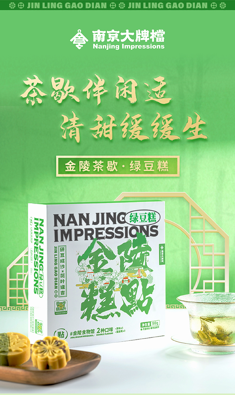 南京大牌档特产秦淮绿豆糕 一盒5个 每个30g