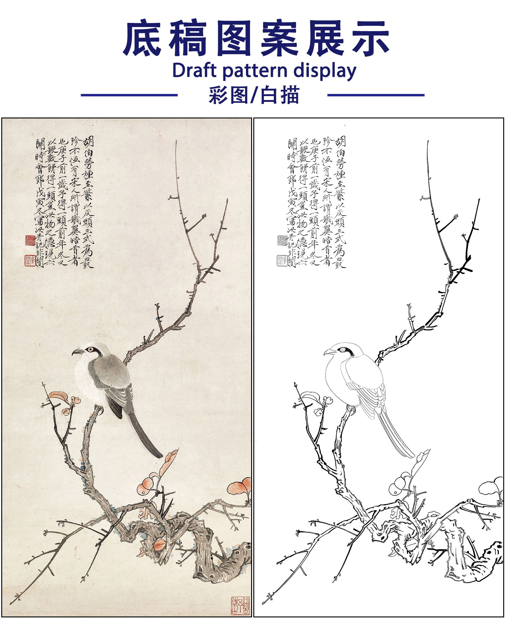 于非闇花鸟工笔画白描底稿《红叶伯劳》临摹勾线高清打印稿FA11