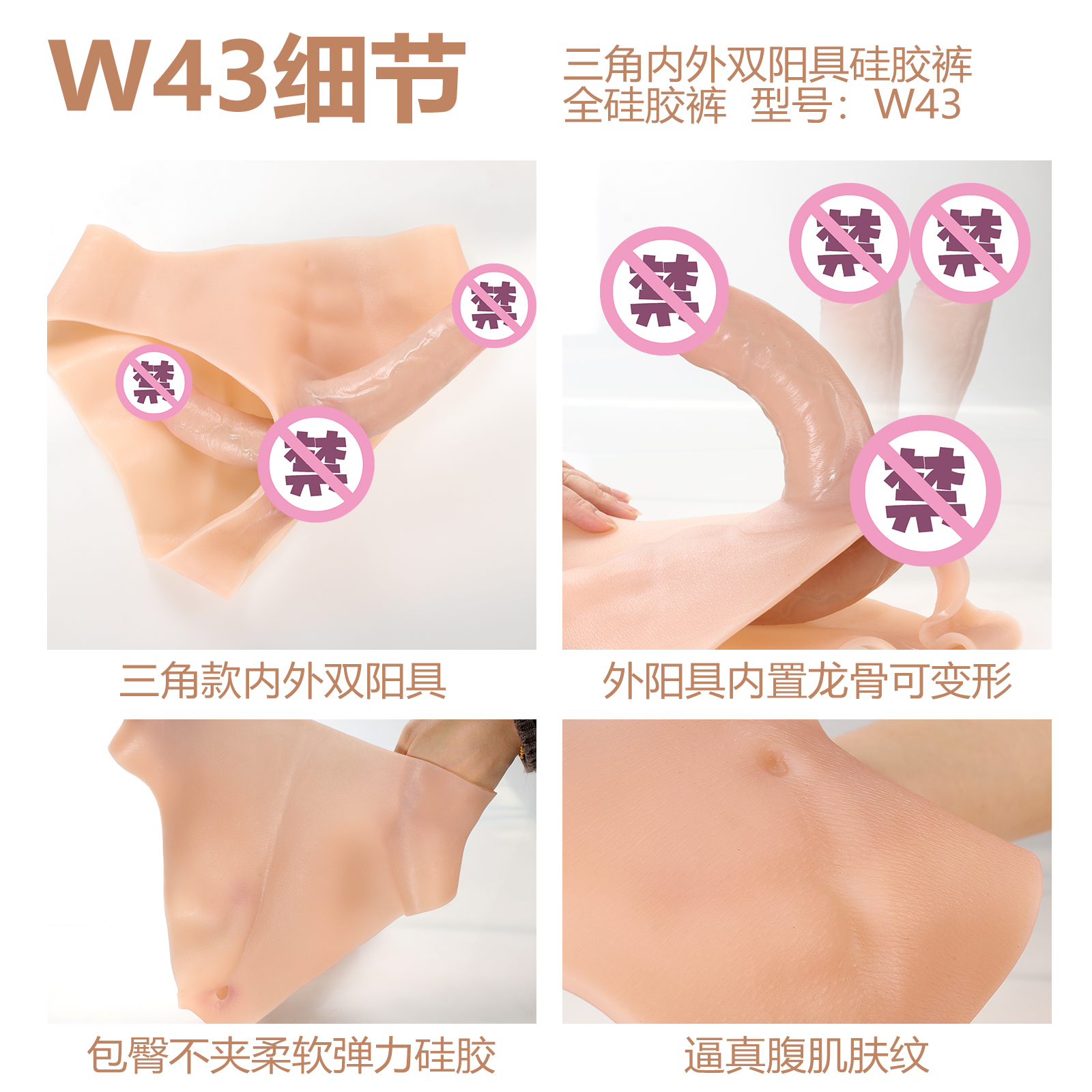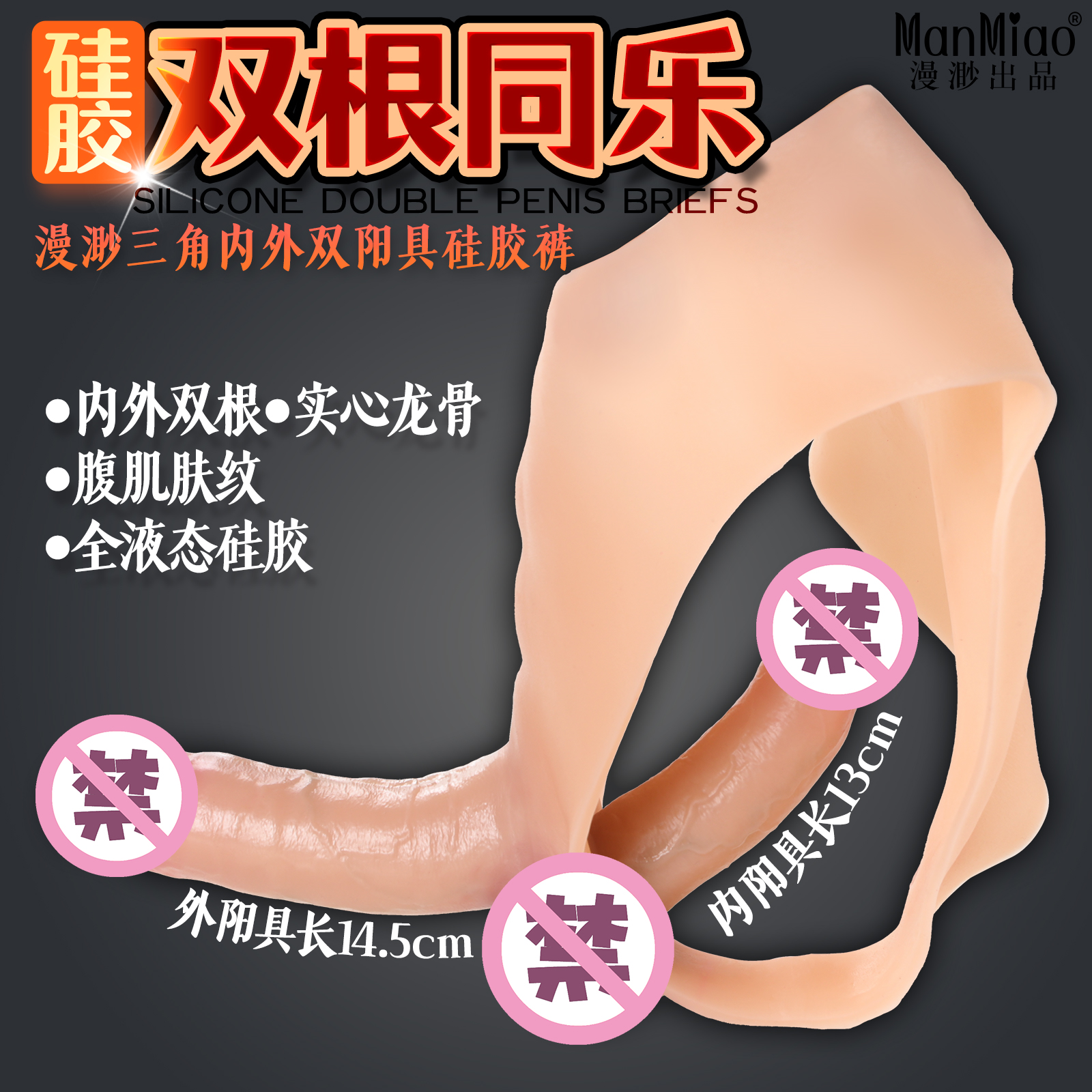 漫渺三角内外双头阳具硅胶裤 型号:W43 条码:6973736552928 ManMiao Silicone Double Penis Briefs 二陰茎シリコンパンツ đôi dương vật silicone quần lót 쌍음경 실리콘 팬티 材质:液态硅胶Silicone 规格:32*26cm 产品净重:775g 腰围58cm 皮裤厚0.3cm 外阳具长14.5cm 粗3.7cm 可插入14cm 内阳具长13cm 粗3.2cm 可插入11cm 盒装规格:23.5*11*8.5cm 盒装重:860g 快递盒规格:26*15*18cm 快递重:1000g 全液态硅胶,外阳具实心龙骨硬款,内阳具实心,上色青筋,带腹肌,带皮纹,柔软弹力易穿戴【产品名称】漫渺三角内外双头阳具硅胶裤【型号】W43 【尺寸】产品:32*26cm 外阳具长14.5cm 粗3.7cm 可插入14cm 内阳具长13cm 粗3.2cm 可插入11cm 【重量】775g【品牌名称】ManMiao漫渺®【品牌商】上海漫渺国际贸易有限公司【执行标准】Q/MMBJ 002-2017【质检标准】GB/T 22048-2008 B6675.4-2014 GB 4706.1-2005合格【产品材质】硅胶【主要功能】穿戴房事【保质期】3年【生产日期】见包装盒【保存条件】置阴凉干燥处保存【使用方法】见视频或网页【注意事项】1、本产品为成人用品,严禁未成年人使用 2、考虑个人卫生问题,使用前后请需清洗。
