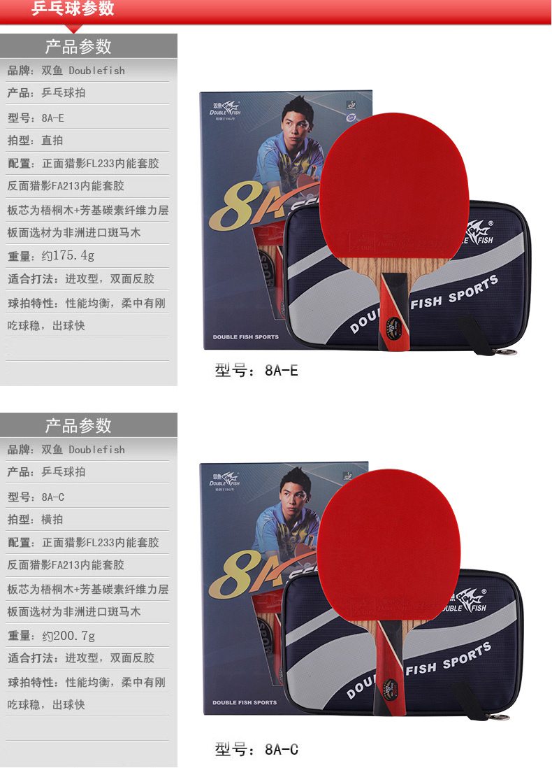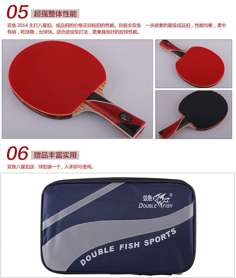 商品名称:双鱼Doublefish 双鱼8A成品拍 内附拍套 碳素纤维高弹球拍