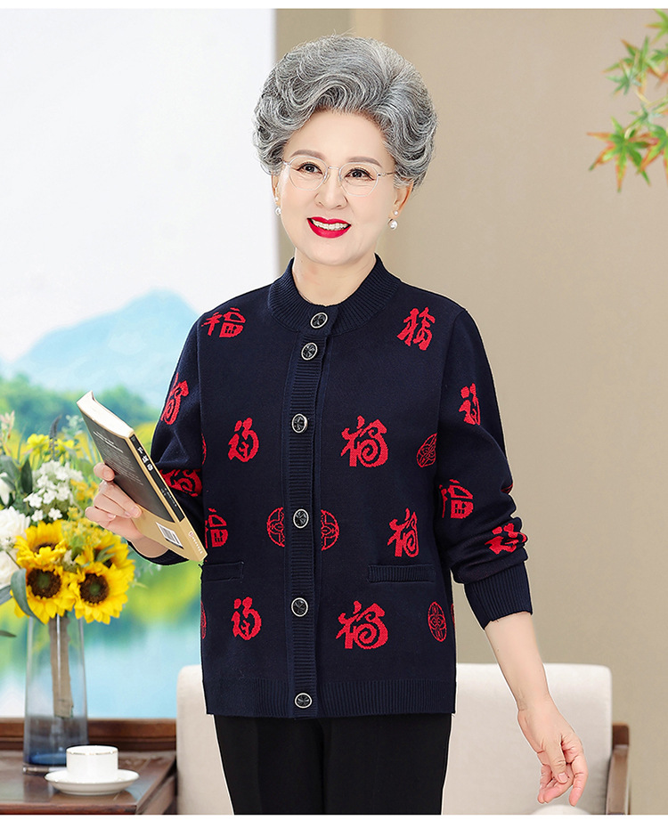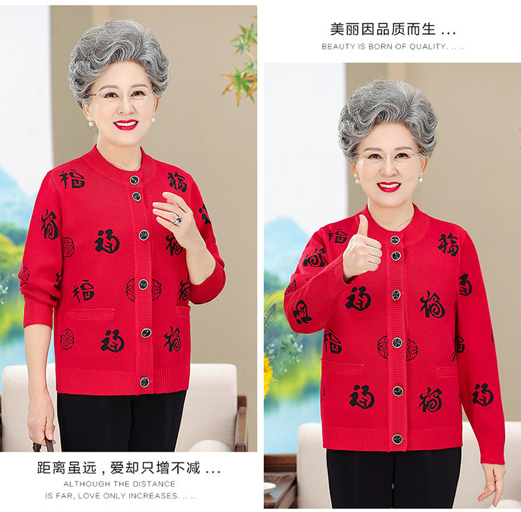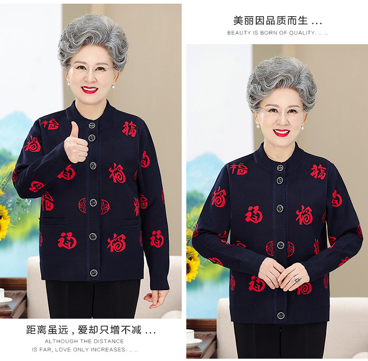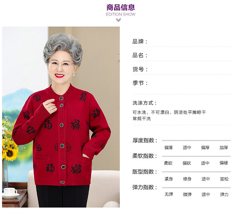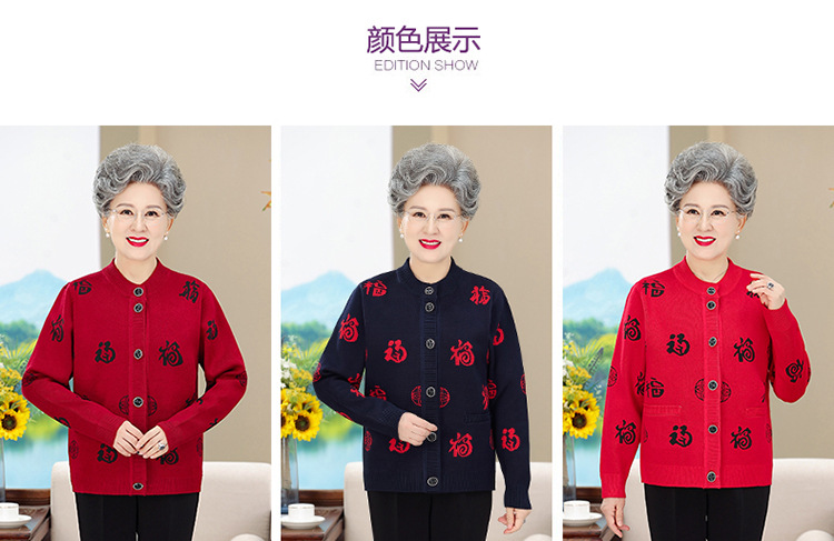 【大码唐装外套】秋装洋气外套 奶奶毛衣针织上衣 中老年妈妈装