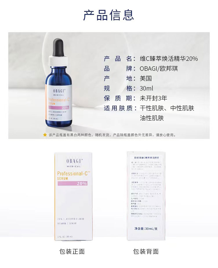 【品牌直发】欧邦琪维C 臻护焕亮/紧致修护/臻萃焕活 精华10% 15% 20% 30ml/瓶