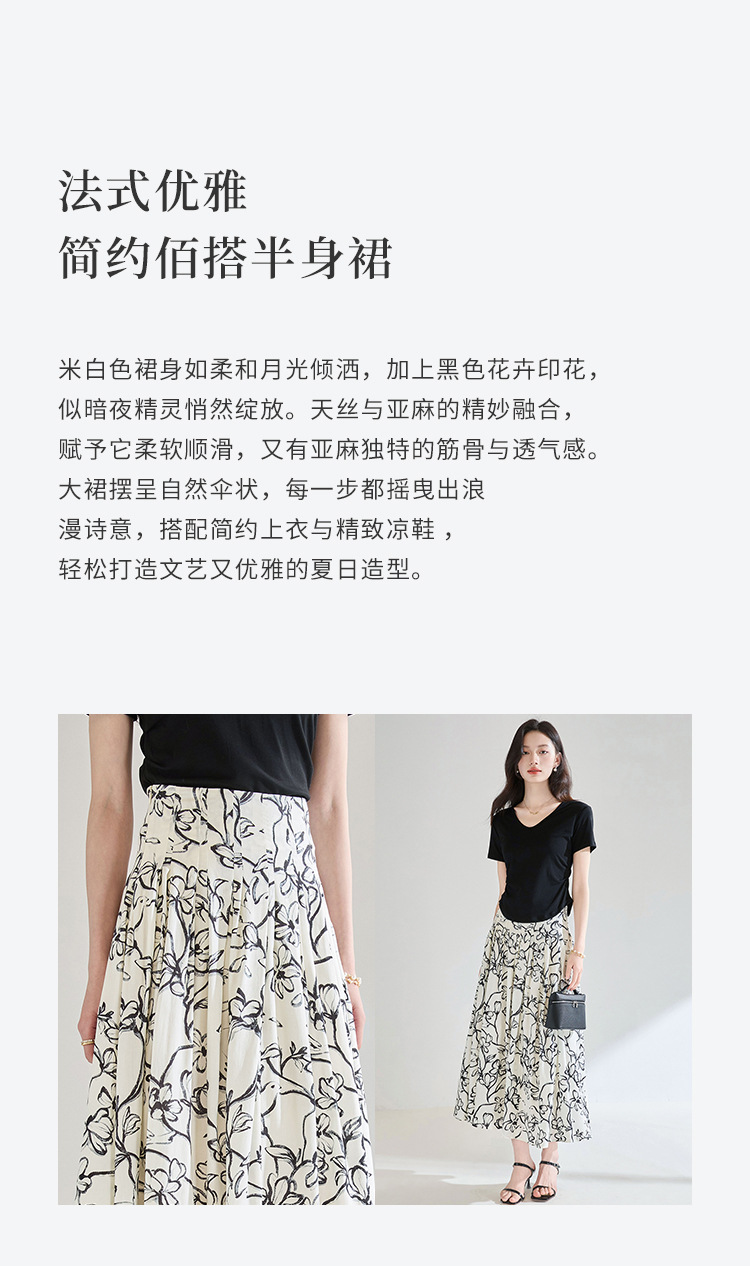 【高货sh】全新升级【铂金会员247/天猫329/差价82】(01459)洛诗琳夏季天丝国风水墨印花显瘦A字高腰伞裙度假风半身裙