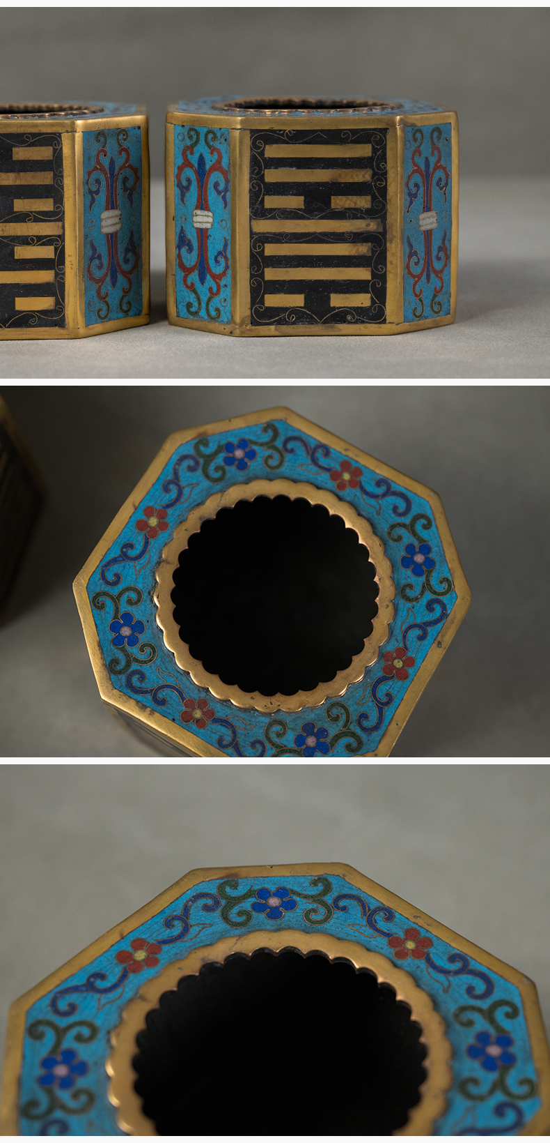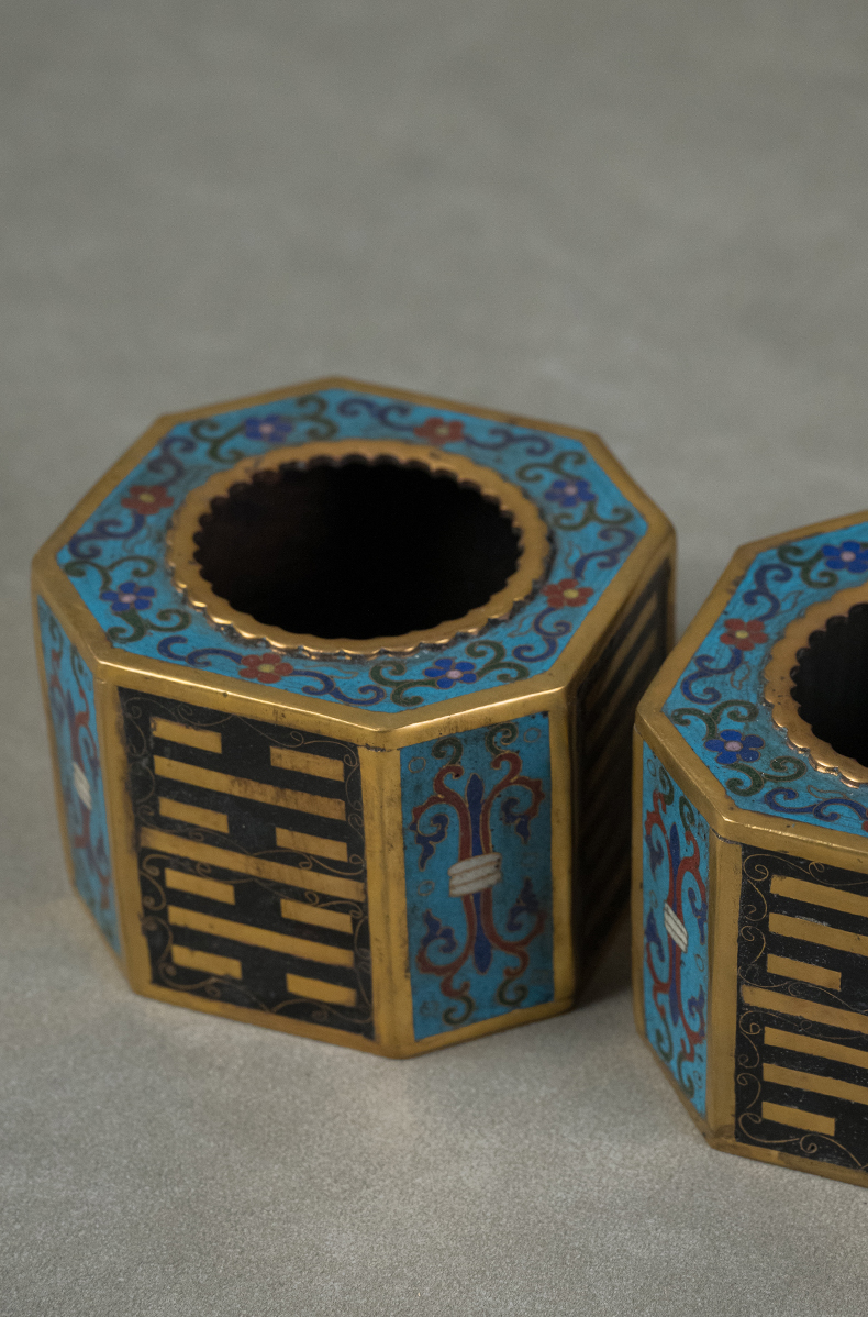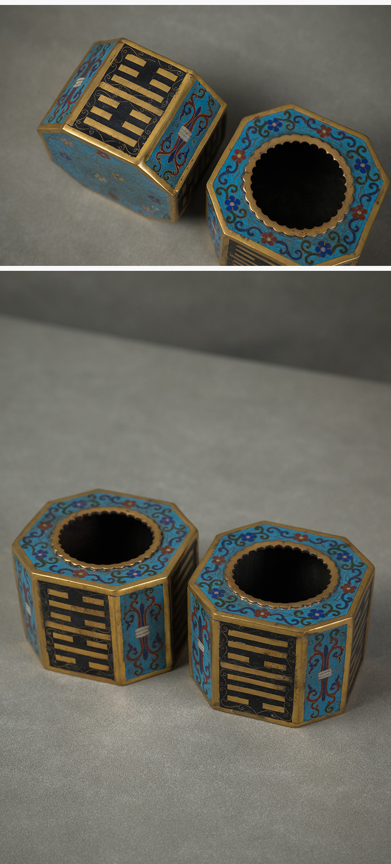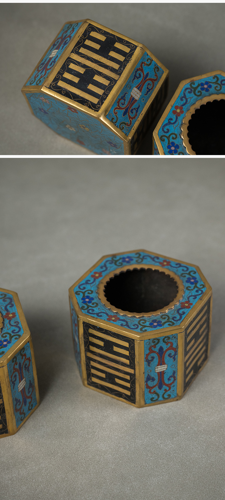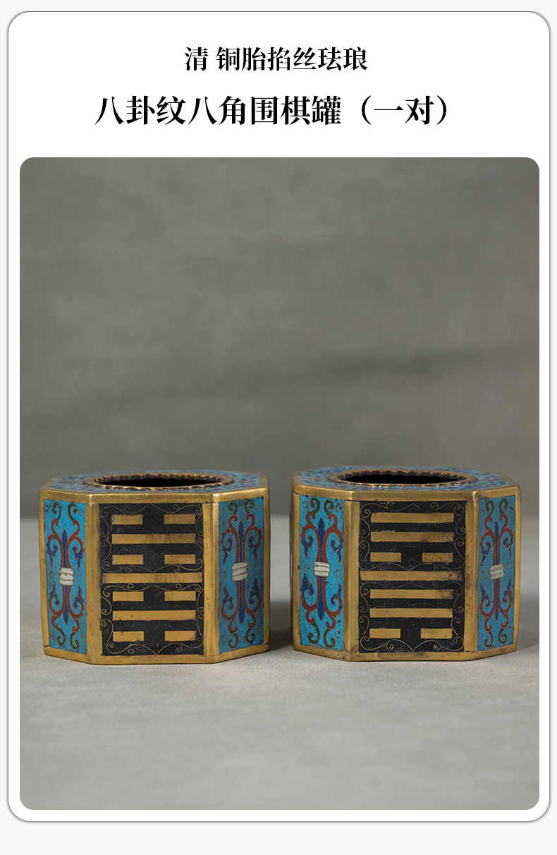 清 铜胎掐丝珐琅八卦纹八角围棋罐(一对)