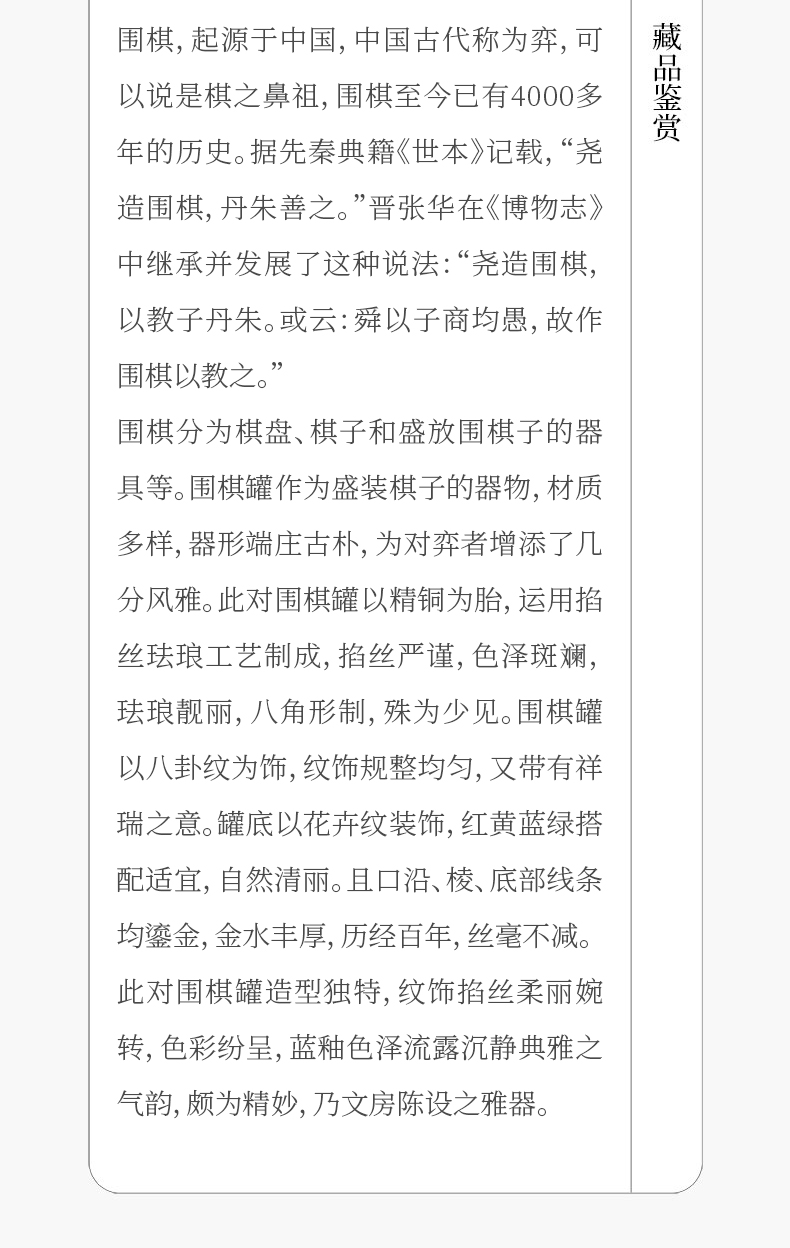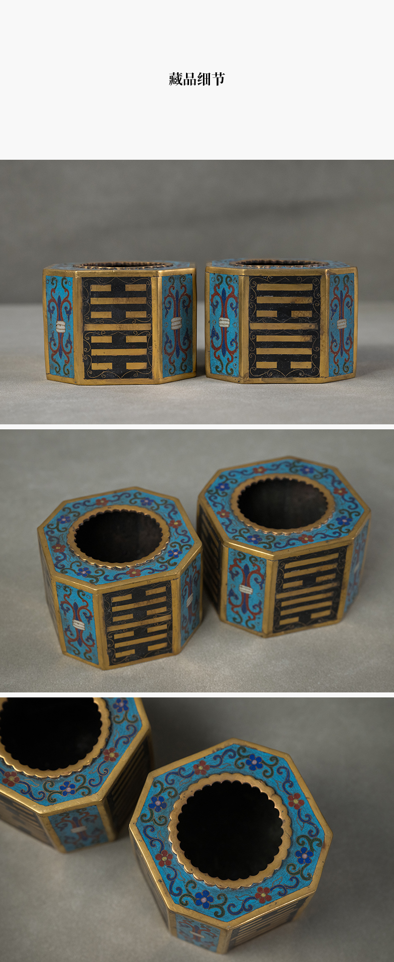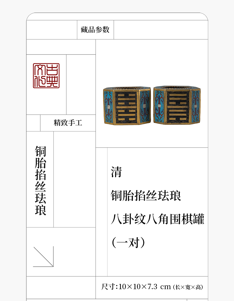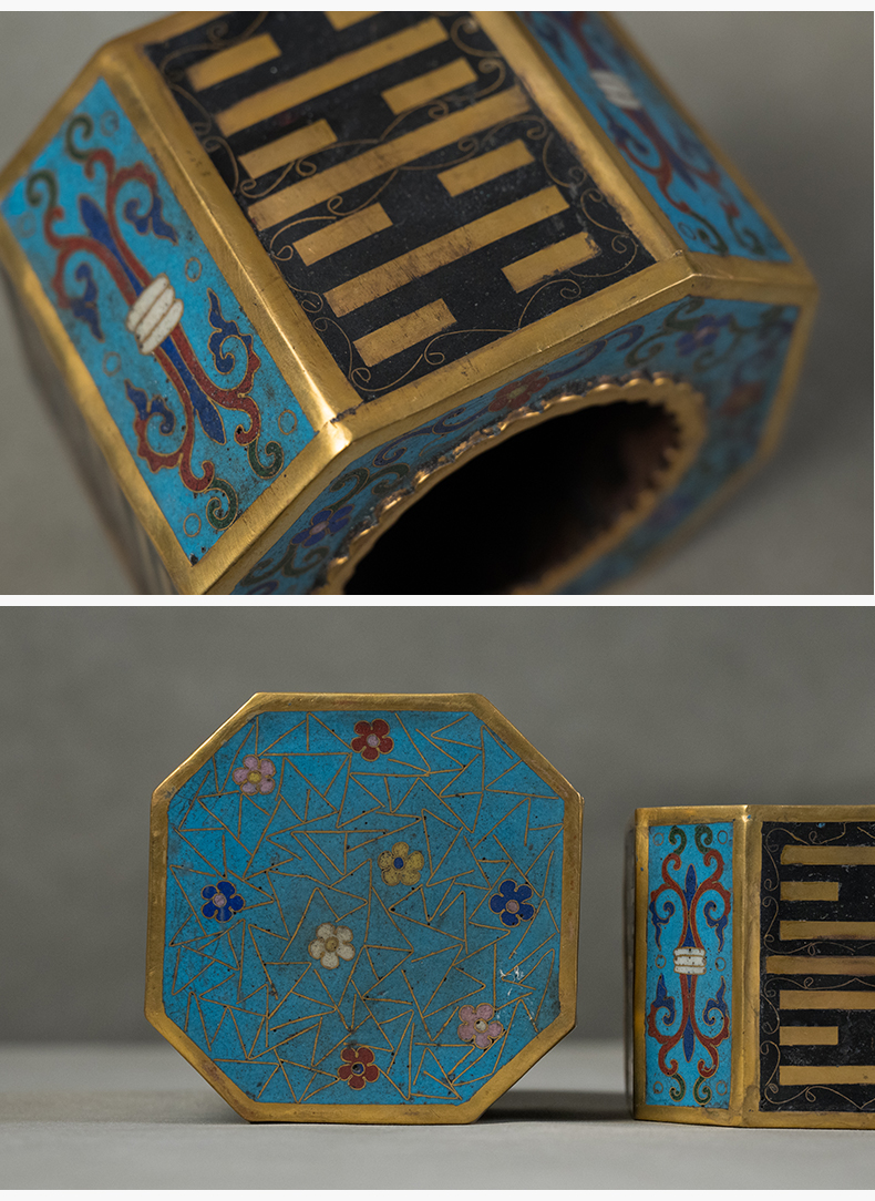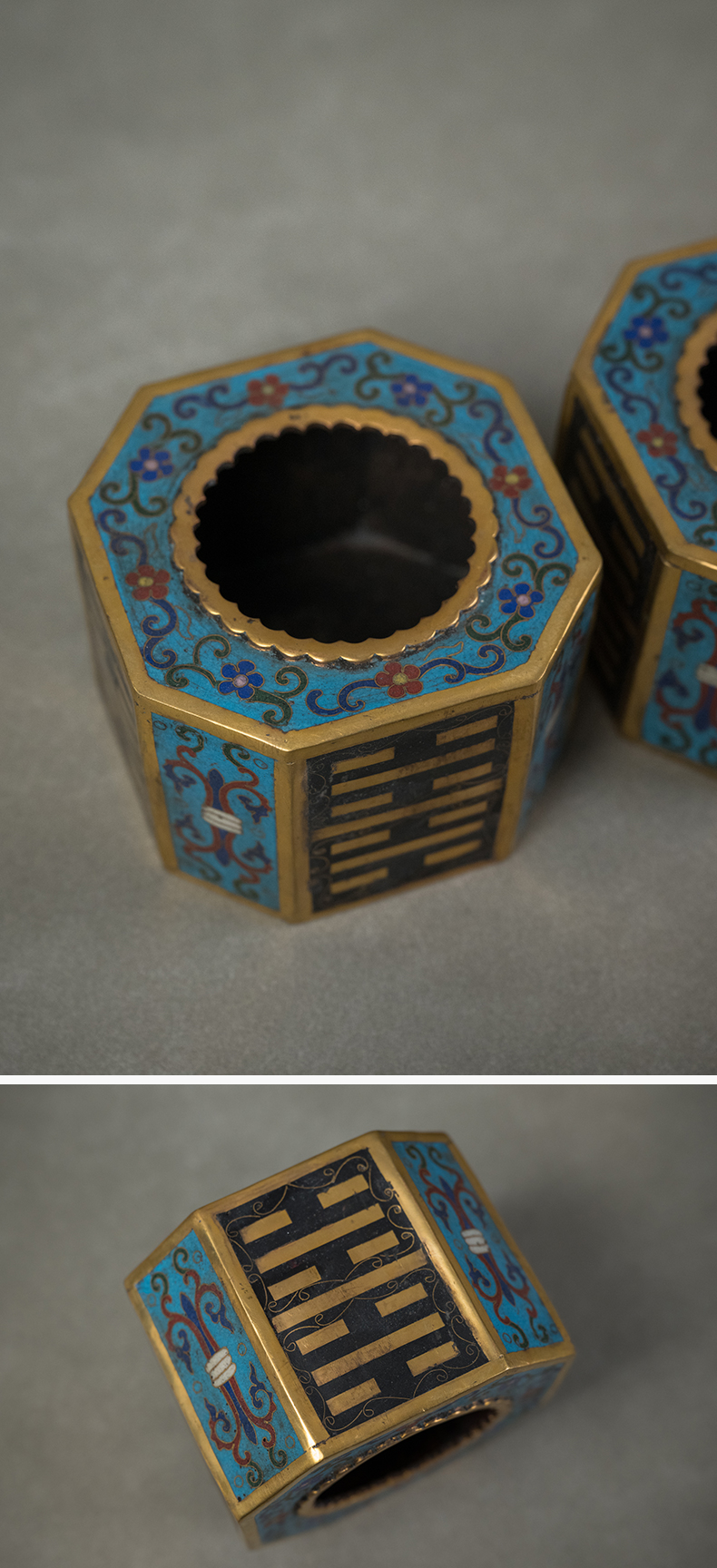 清 铜胎掐丝珐琅八卦纹八角围棋罐(一对)