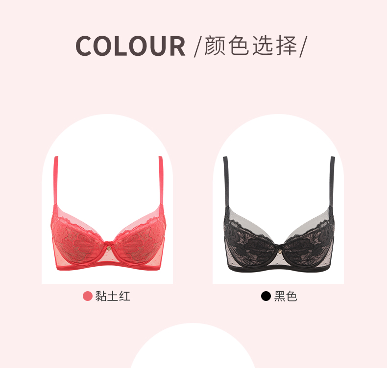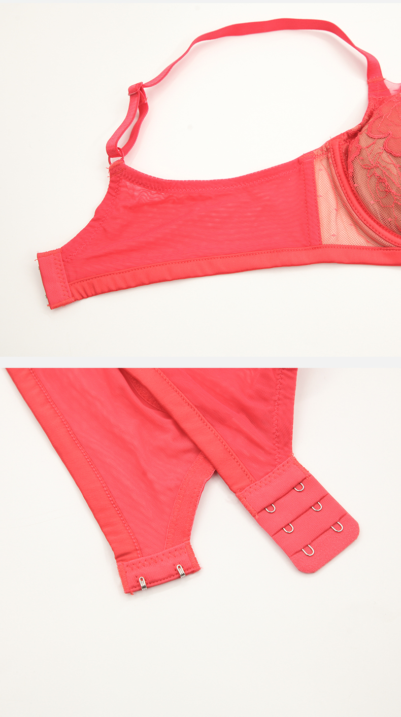 贝佳人新品大胸零负担舒适内衣无压软钢圈透气3/4水晶杯红色文胸