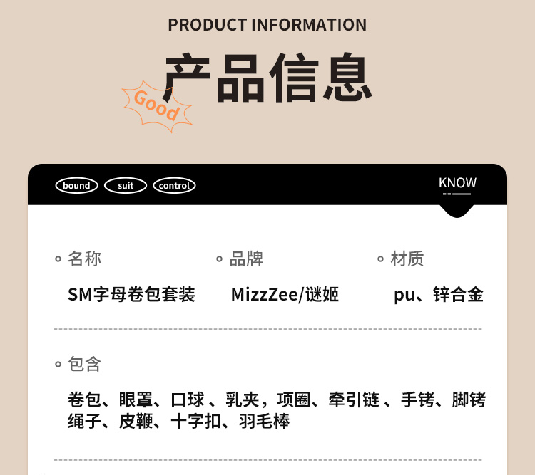 【情趣用品】谜姬 SM字母卷包套组 捆绑束缚
