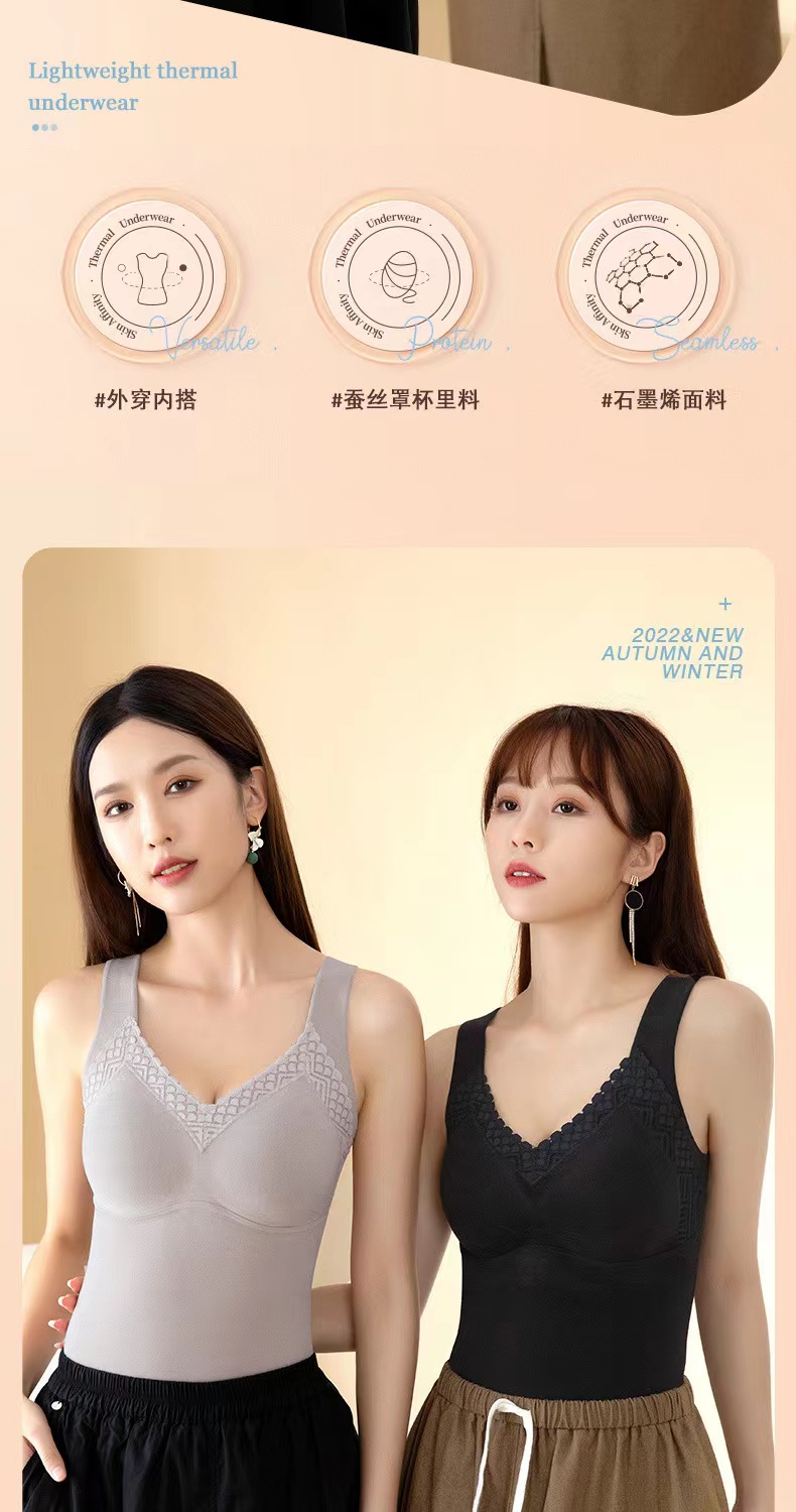 【爆款背心升级款】蚕丝石墨烯发热背心带胸垫无痕修身打底H224270358【现货 同步库存】