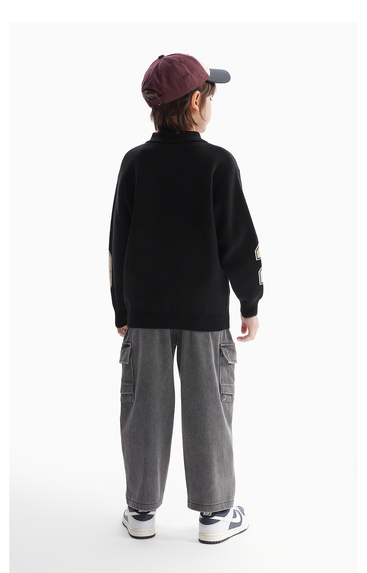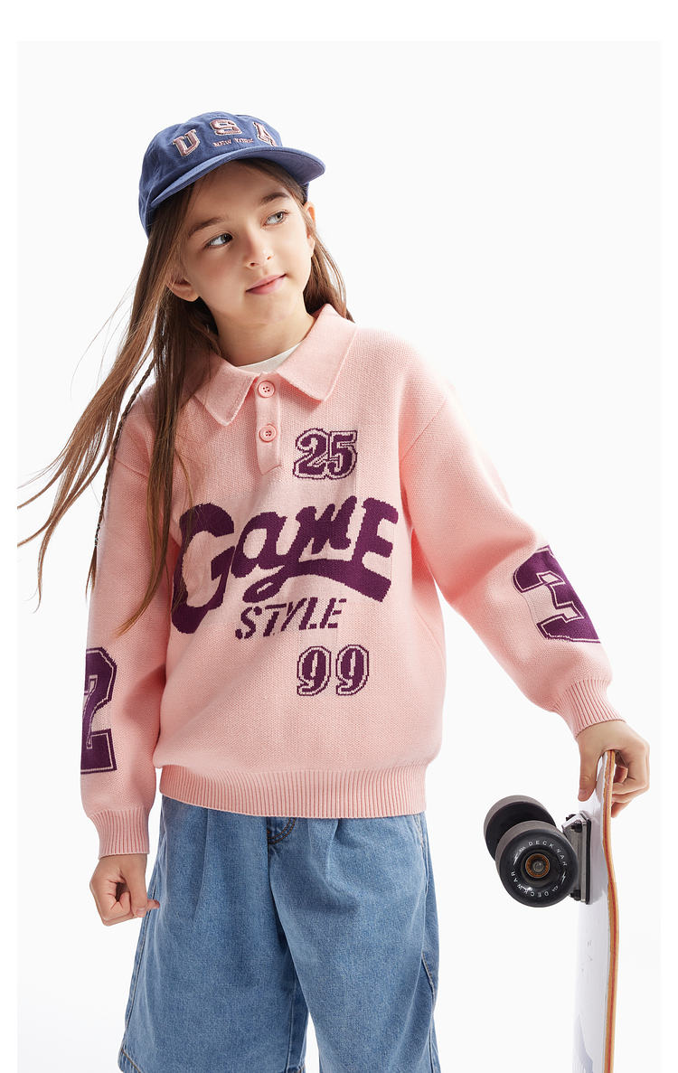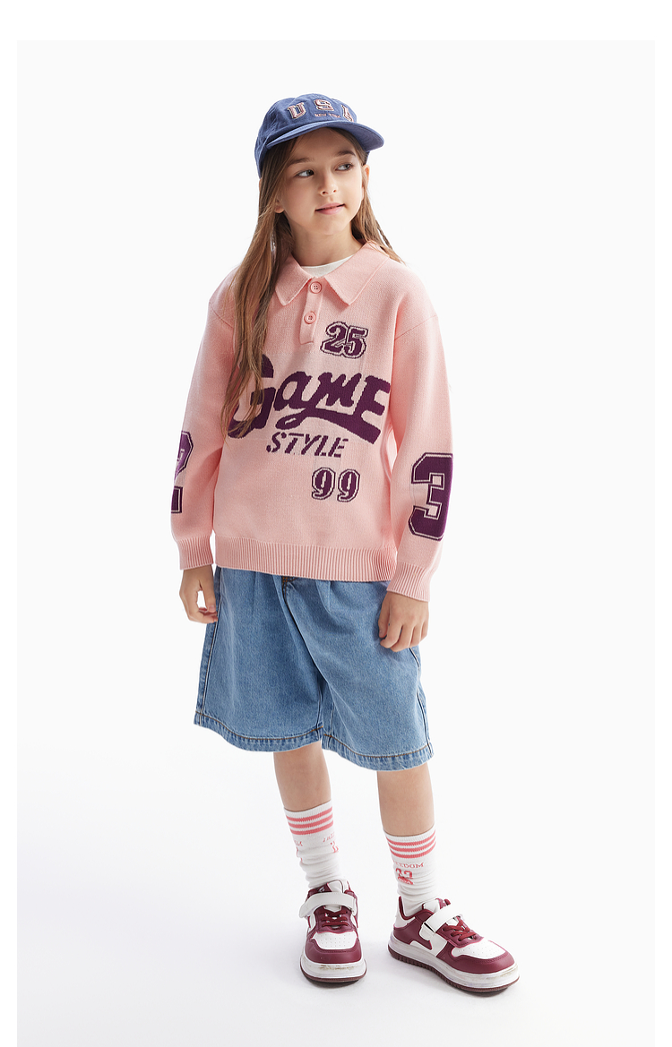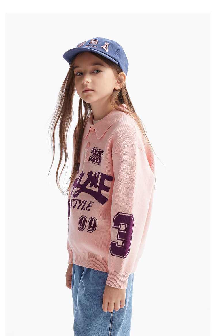 【MQD】童装儿童毛衣春秋款男女童翻领提花宝宝针织线衫宽松上衣