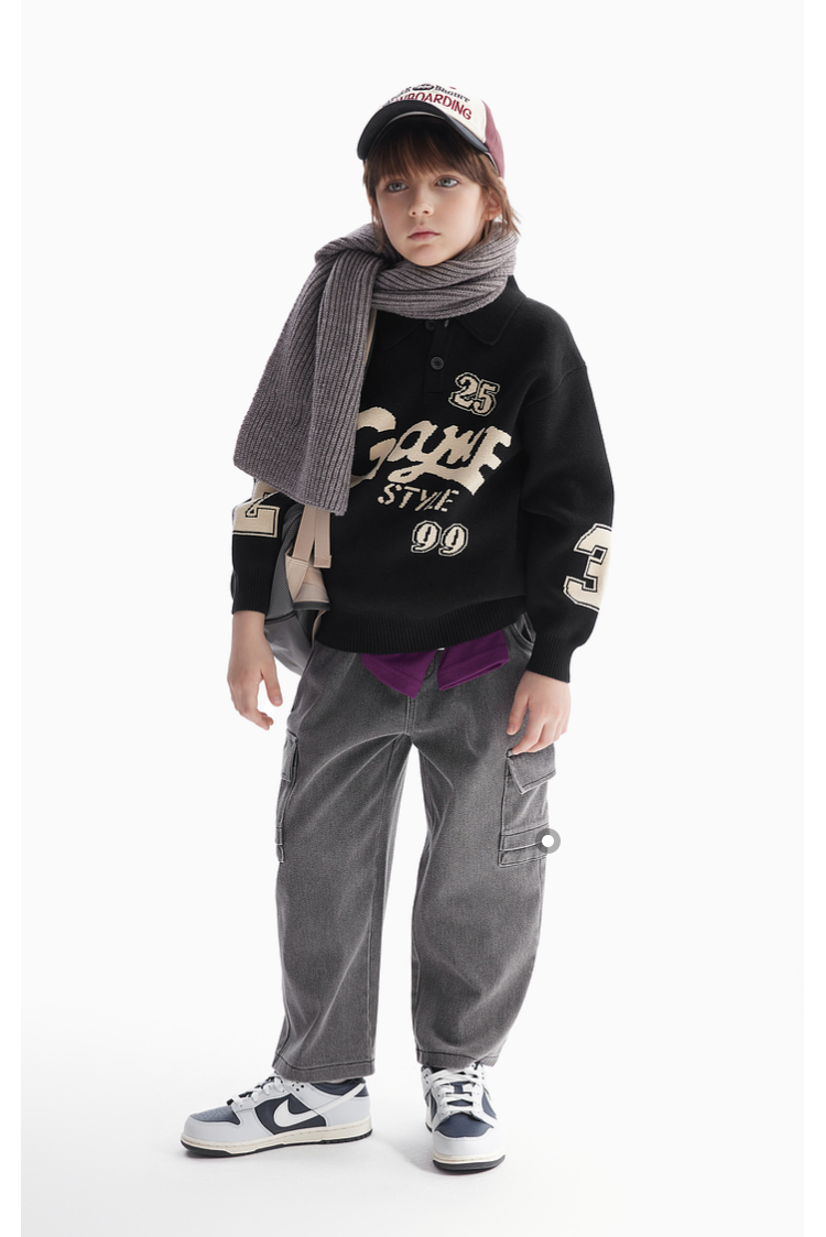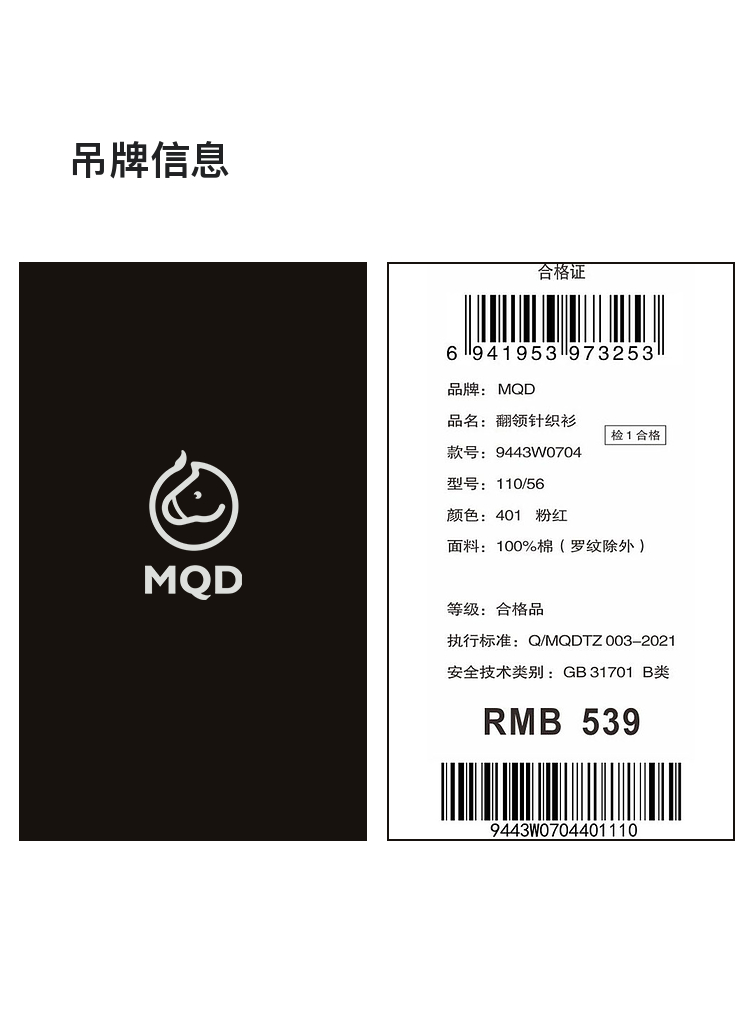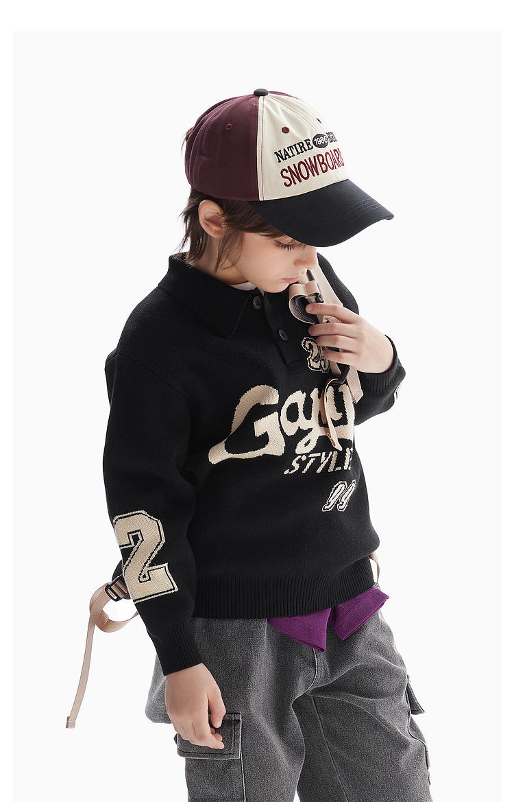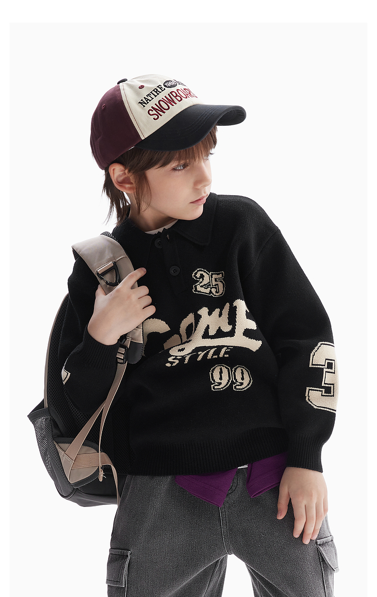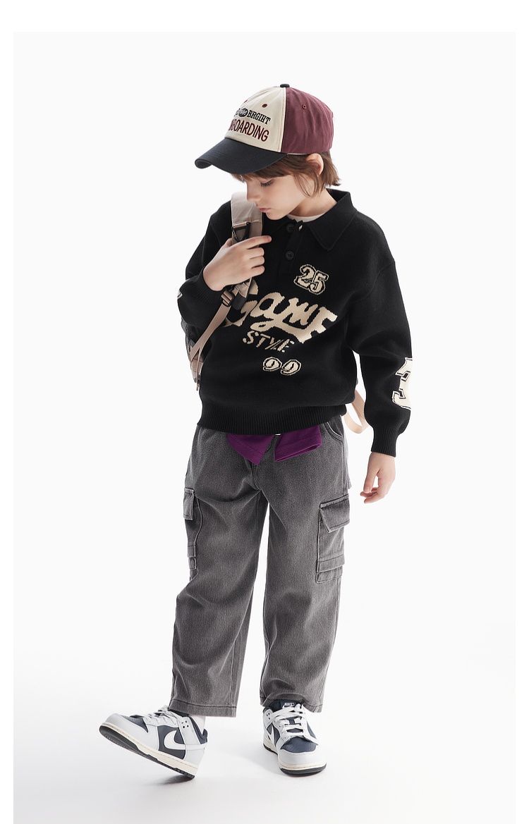 【MQD】童装儿童毛衣春秋款男女童翻领提花宝宝针织线衫宽松上衣