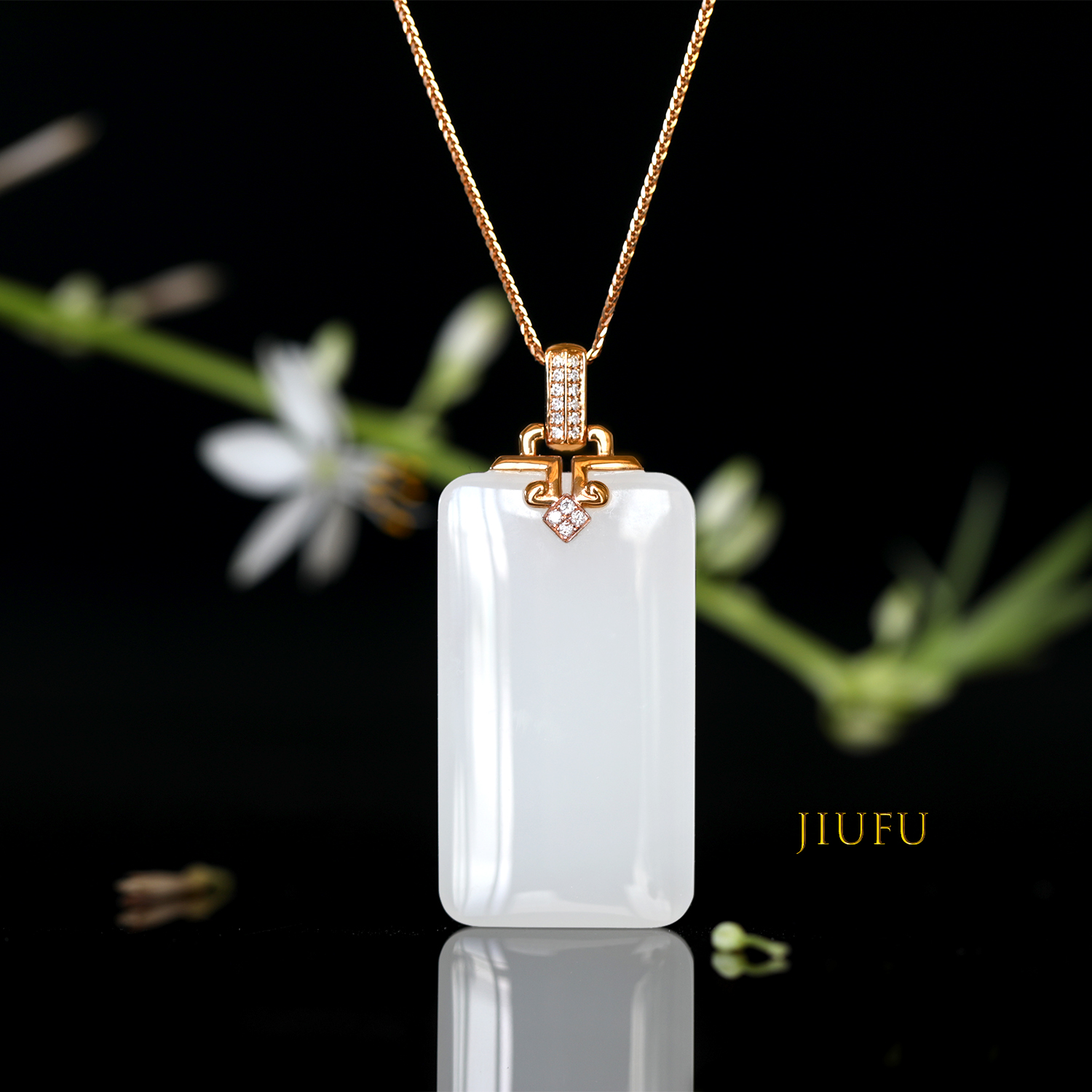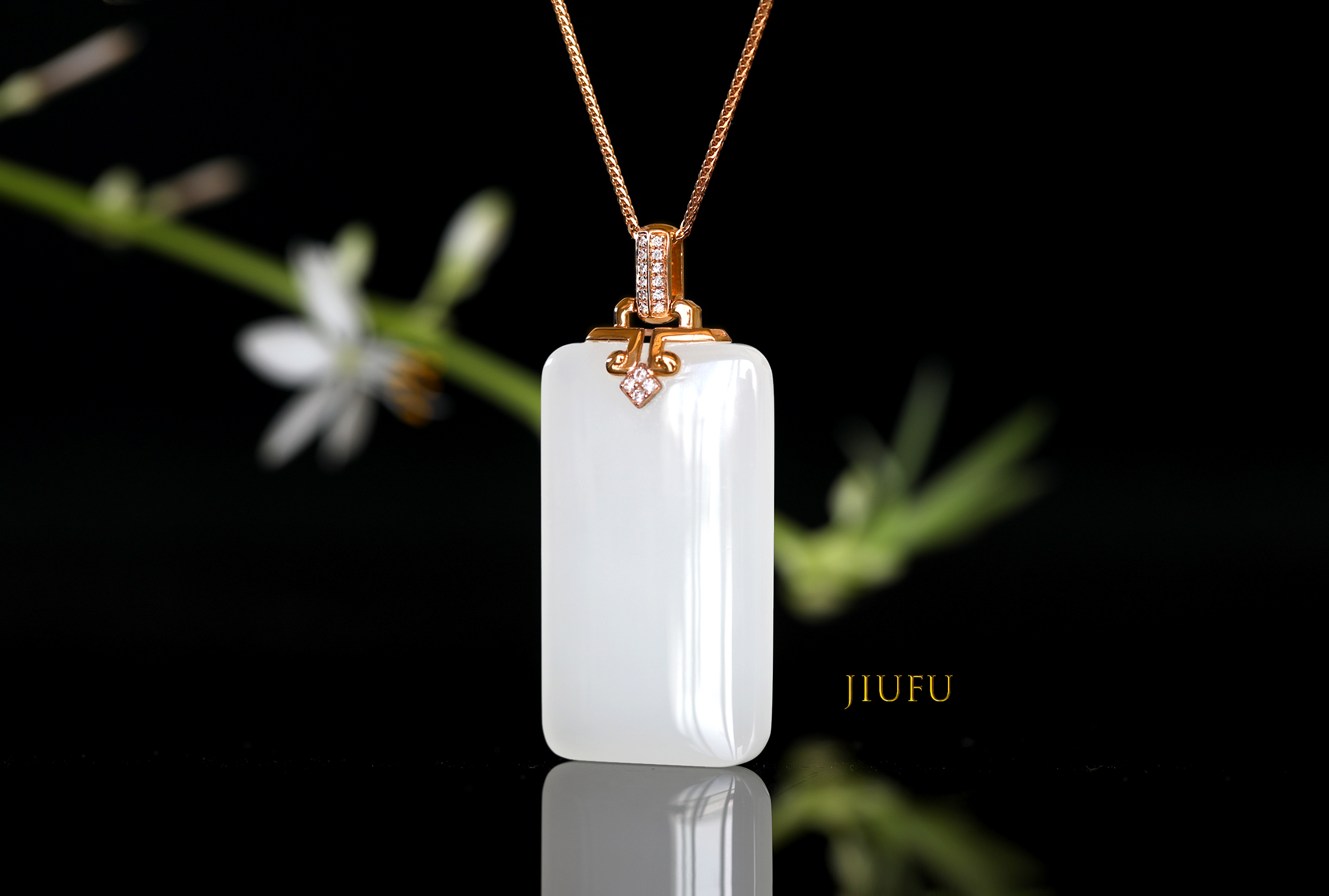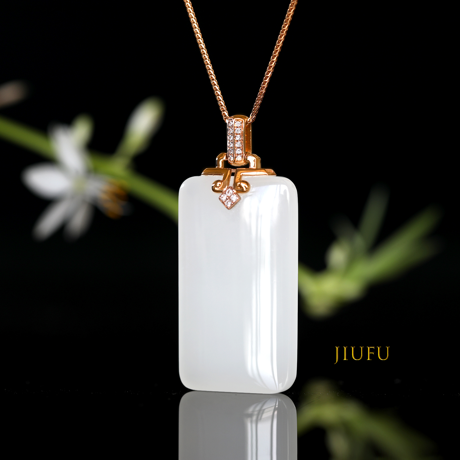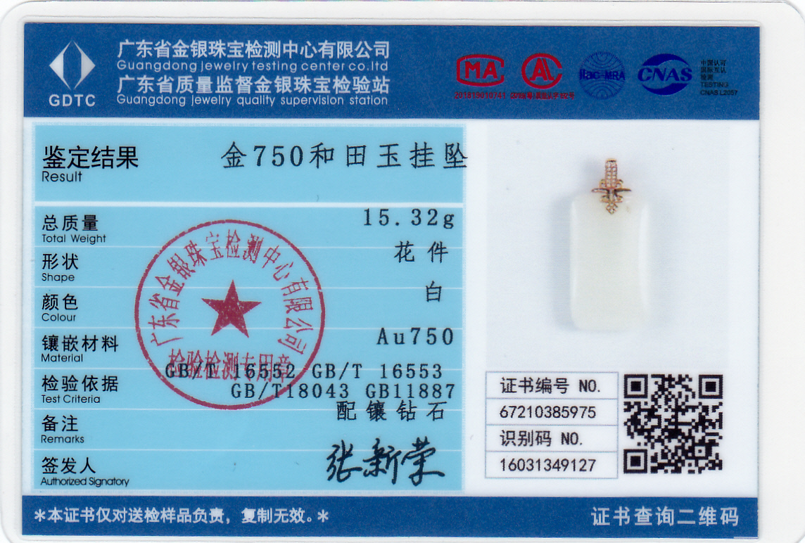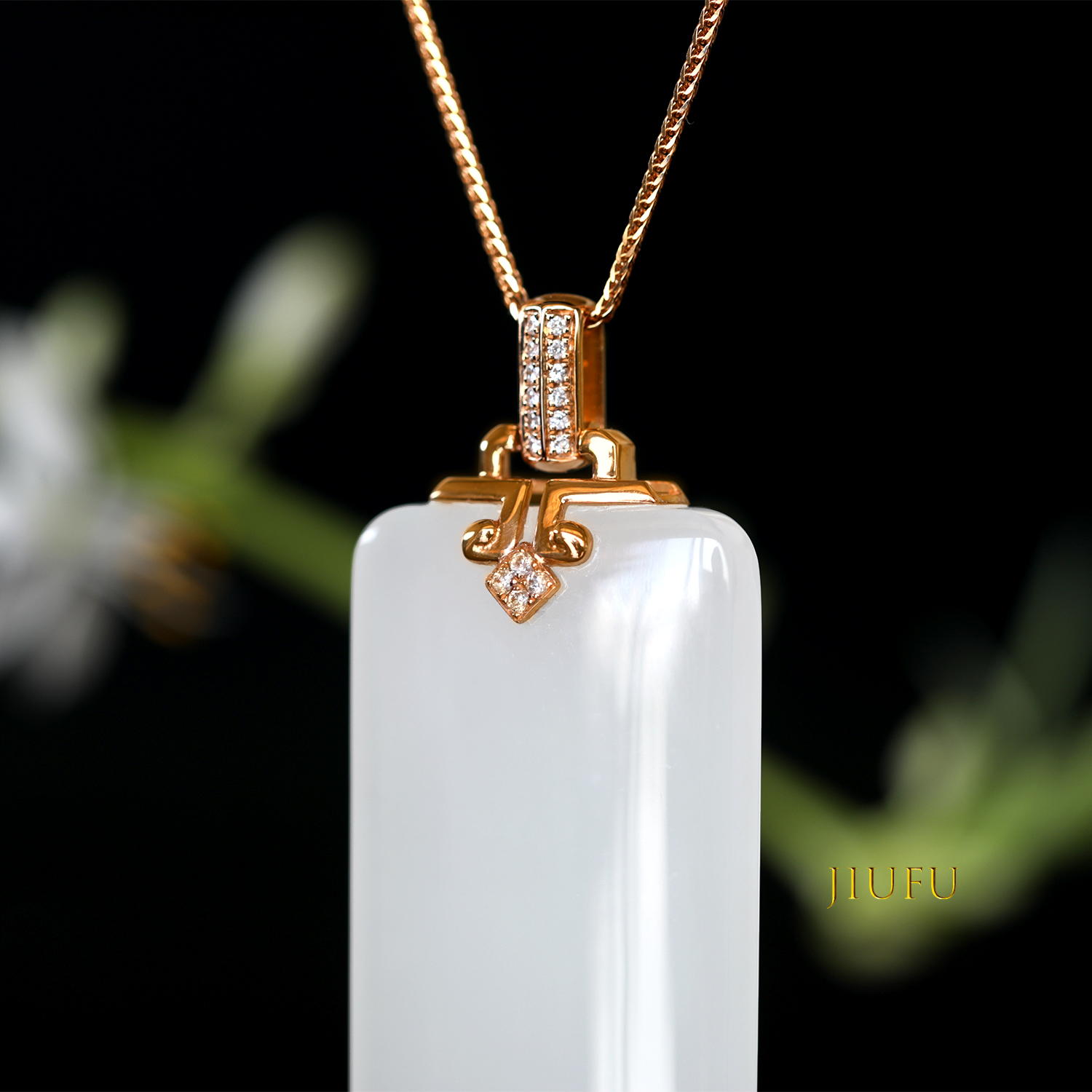 18k玫瑰金和田玉(白玉)吊坠