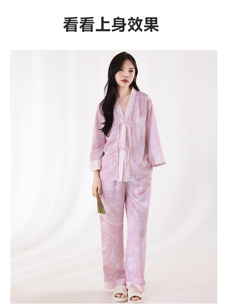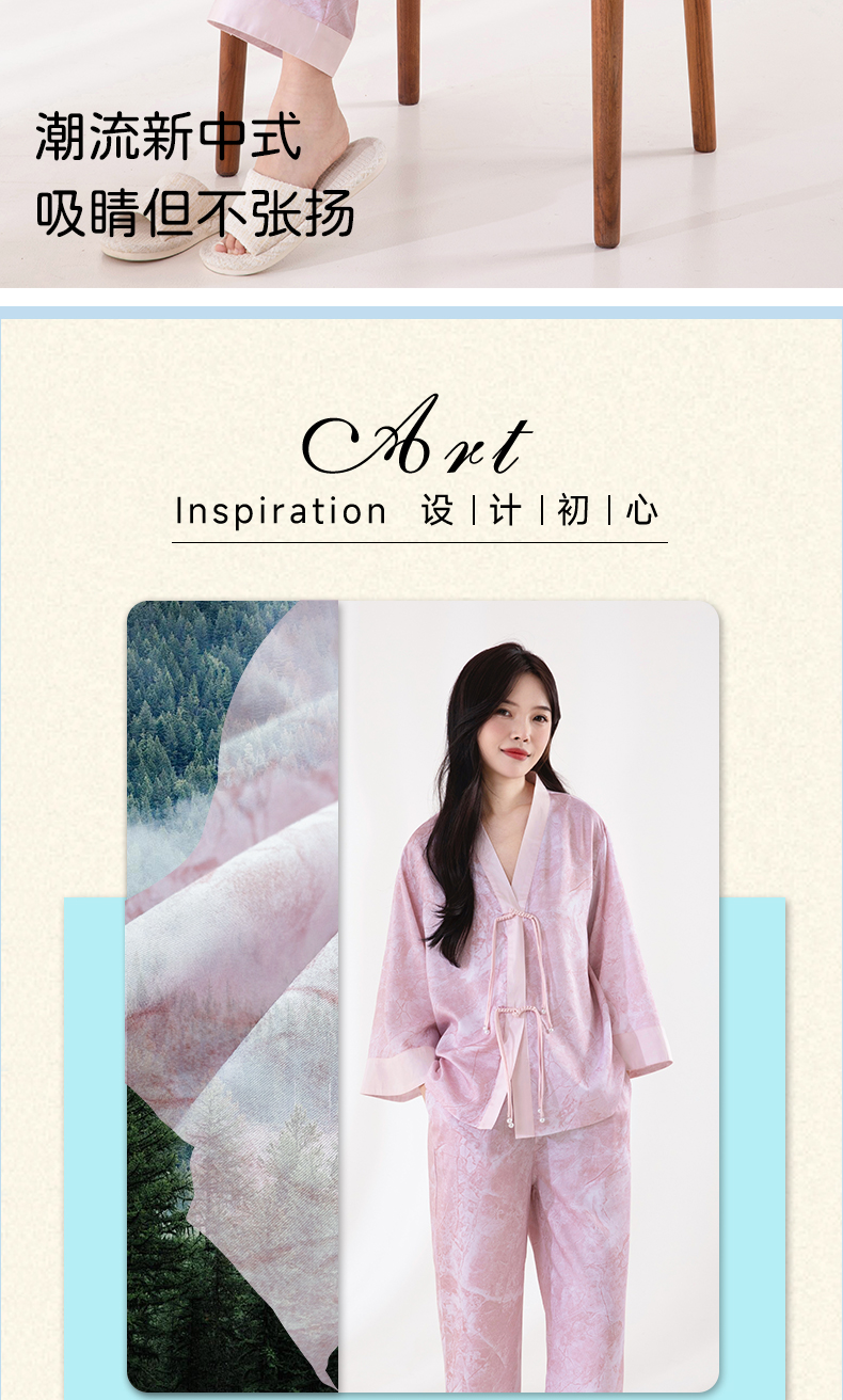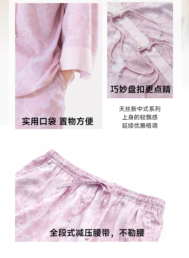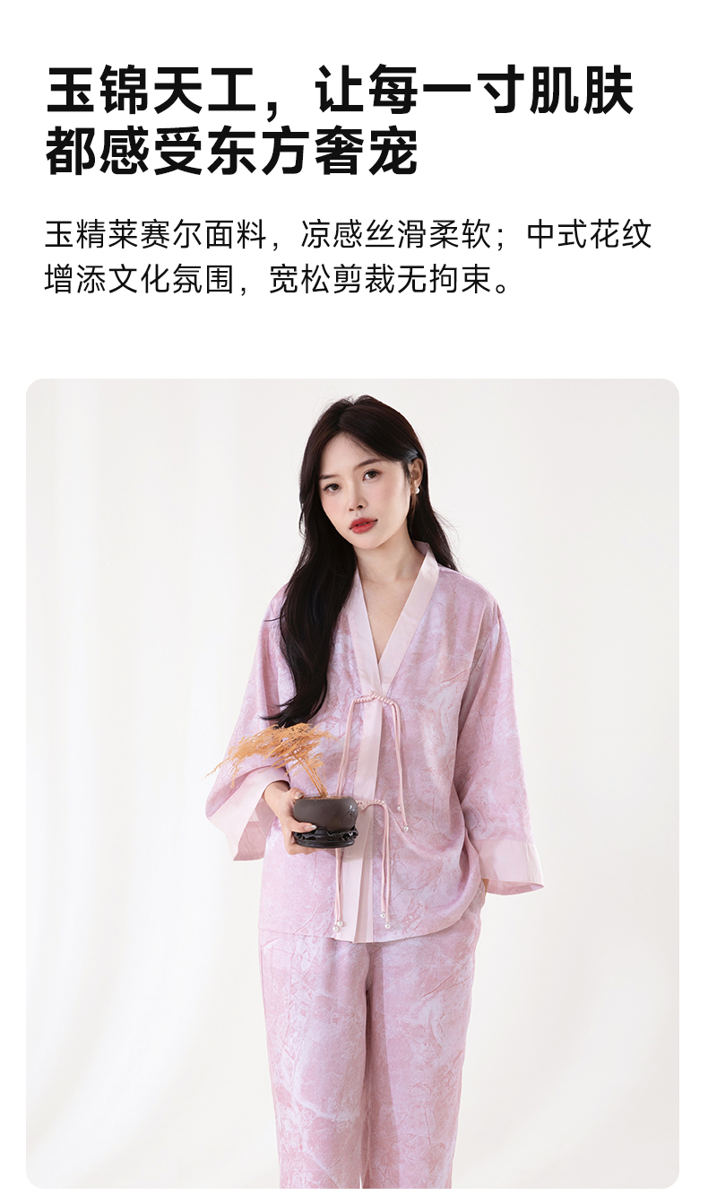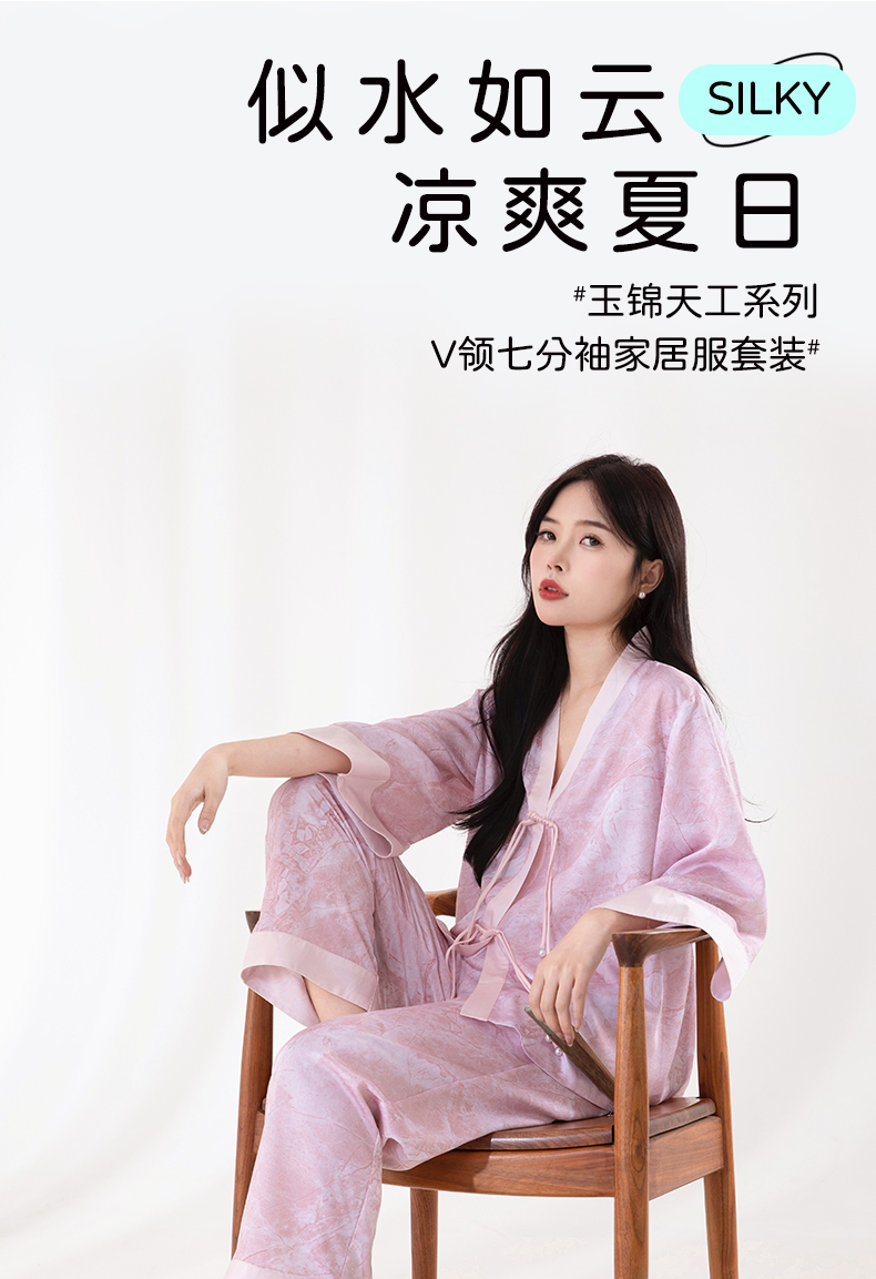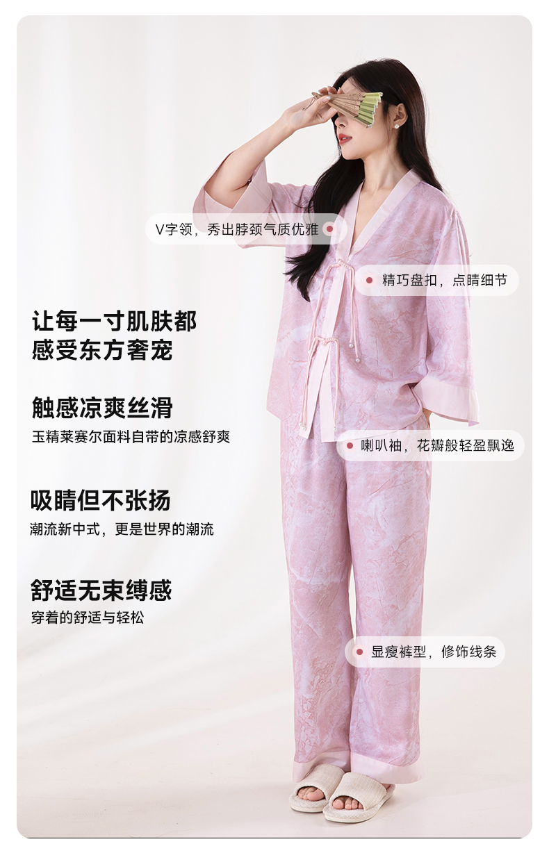 宜色家睡衣女2025新款春夏新中式莱赛尔凉爽轻奢七分袖家居服套装(玉精天丝套装) -H723