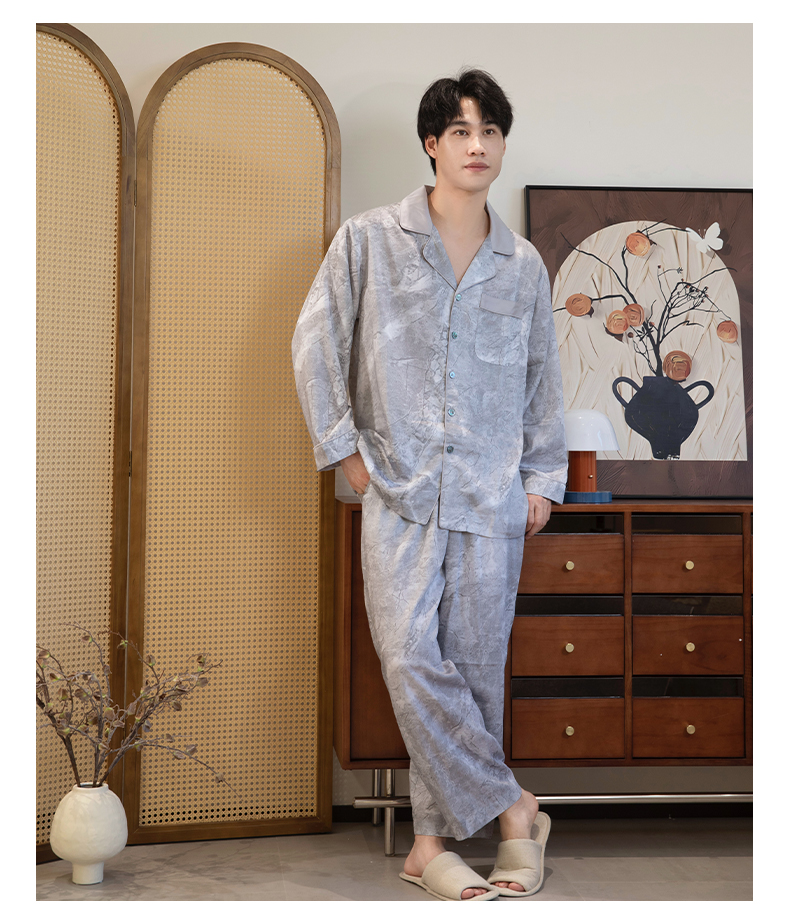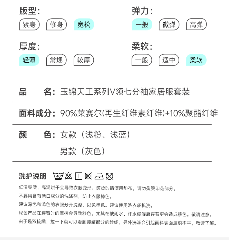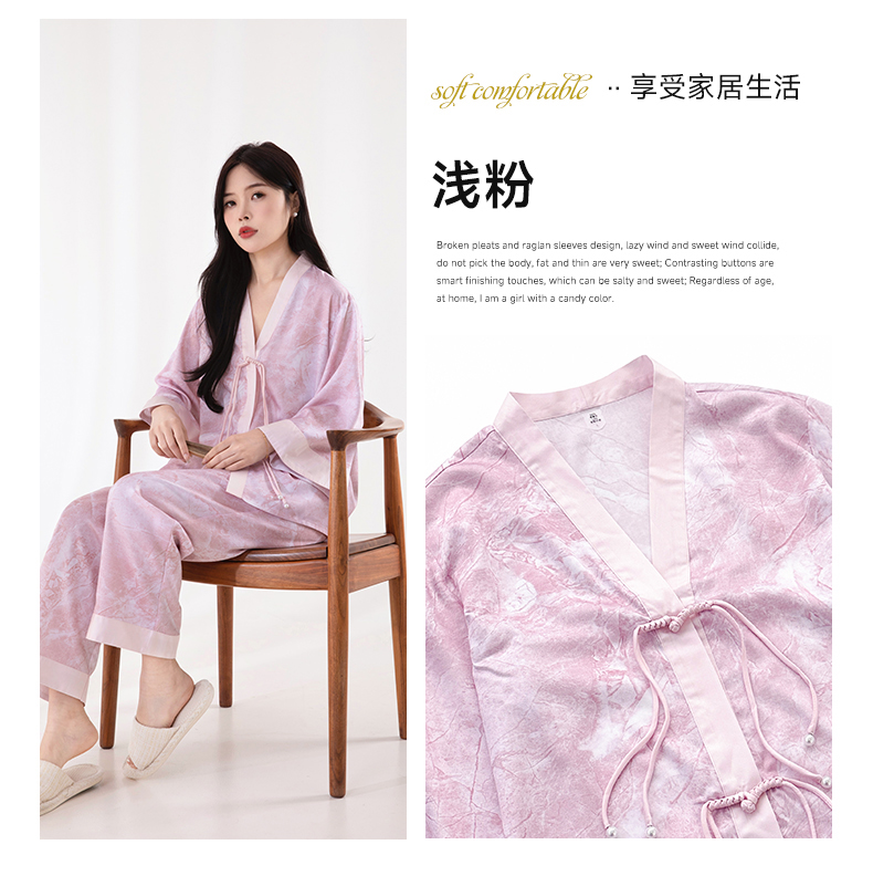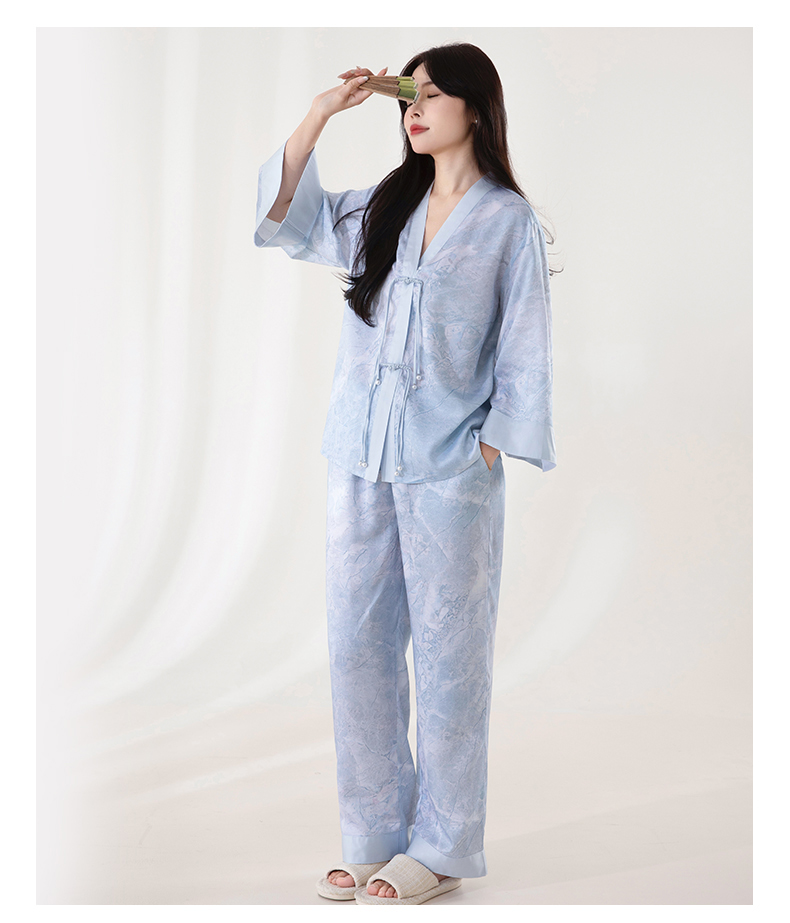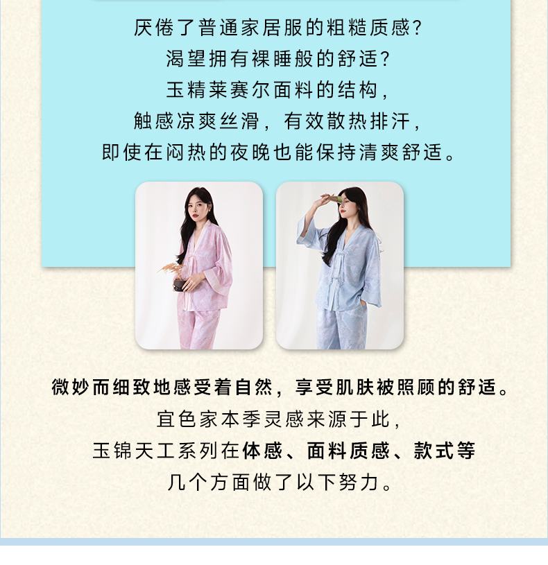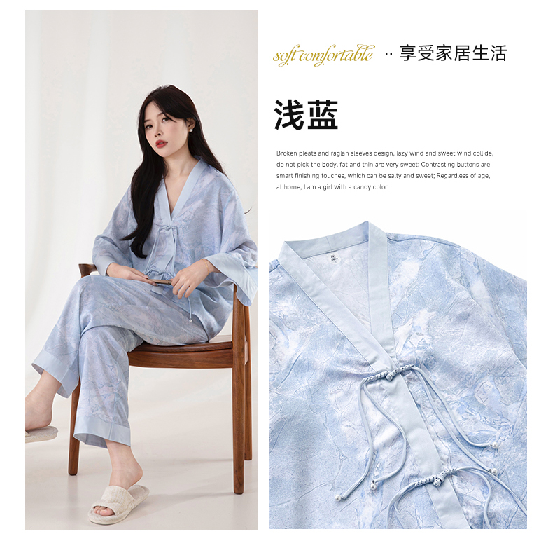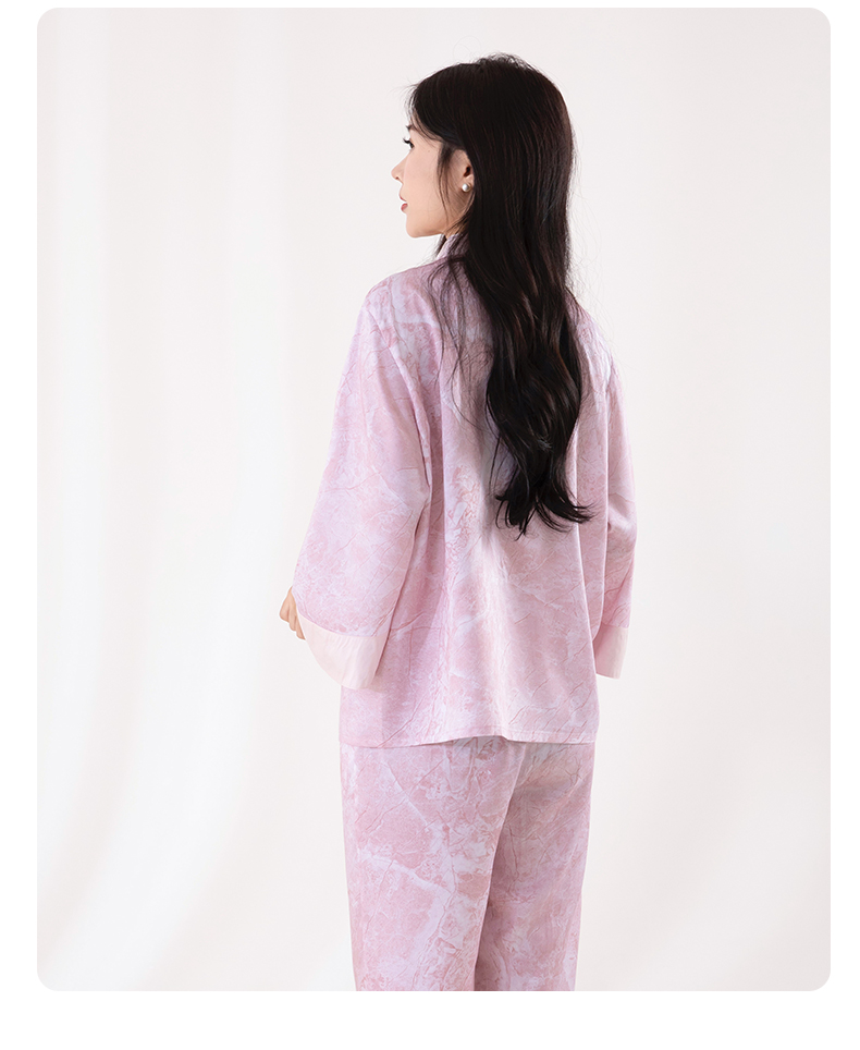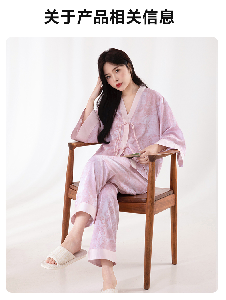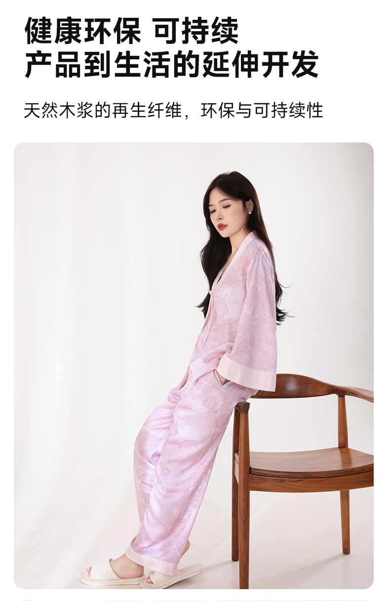 宜色家睡衣女2025新款春夏新中式莱赛尔凉爽轻奢七分袖家居服套装(玉精天丝套装) -H723
