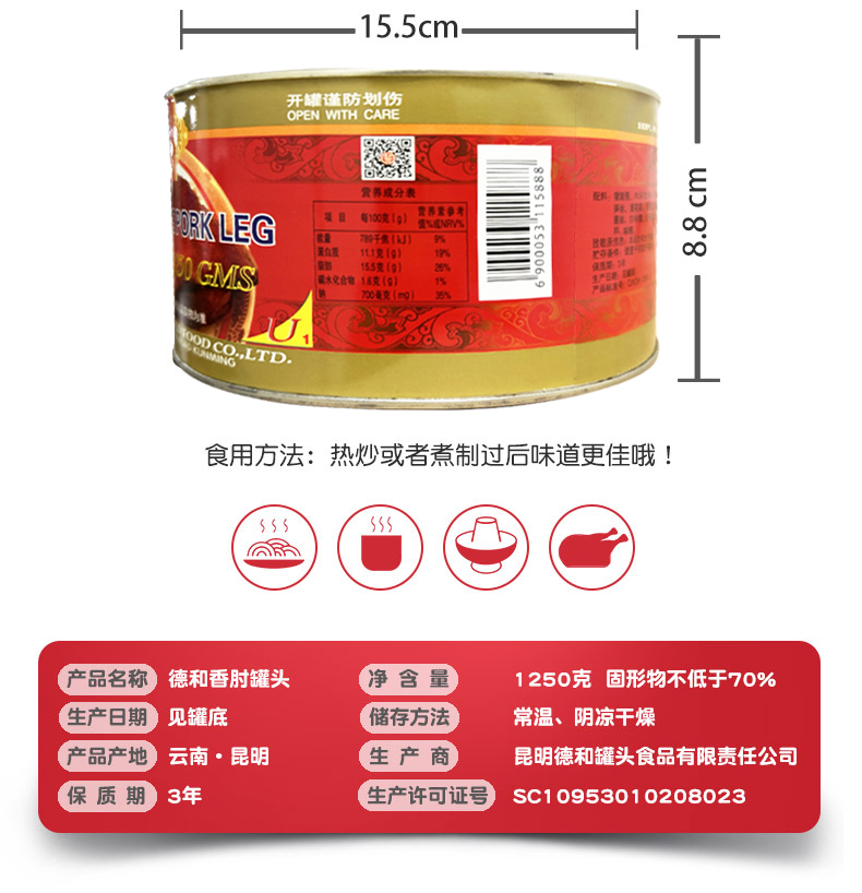 德和 大香肘罐头1250g /罐 火腿猪脚罐头#家常菜