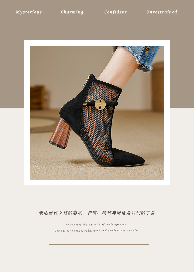 【预售5天】春夏新款,舒适百搭羊猄皮+沙网时尚高跟网靴CZ&C-899