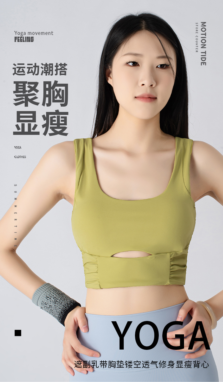 跃牌【小甜心】系列 夏新品遮副乳运动背心女带胸垫可外穿瑜伽服上衣WX785