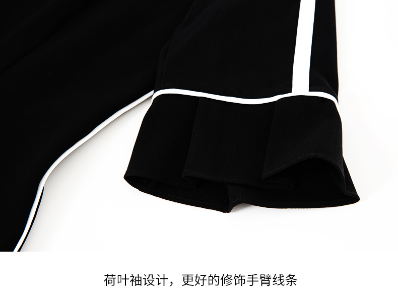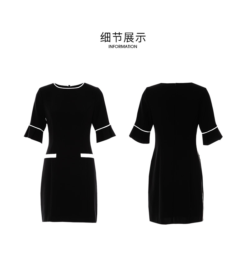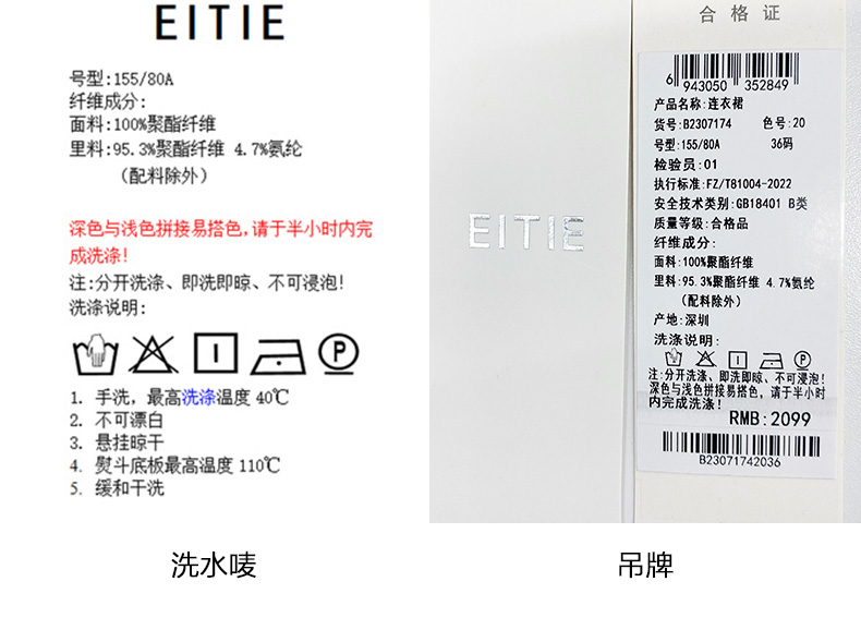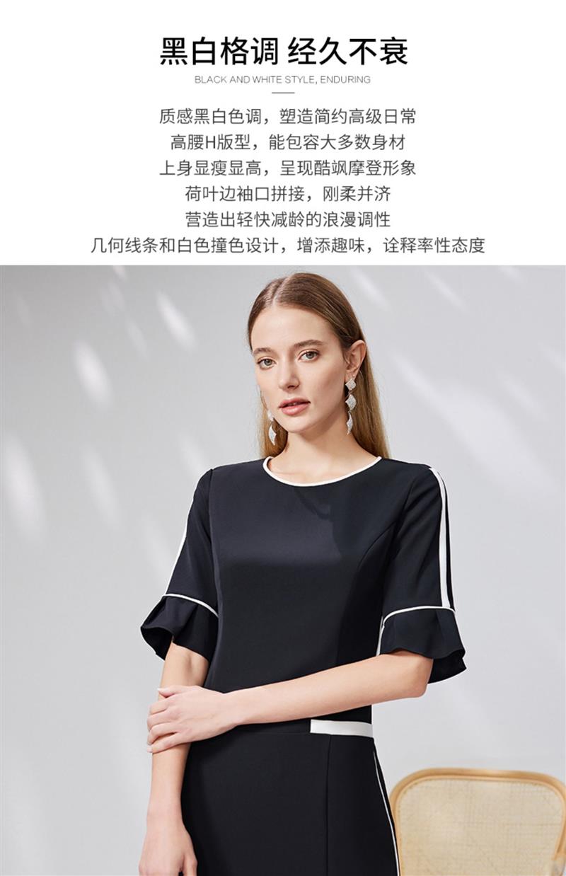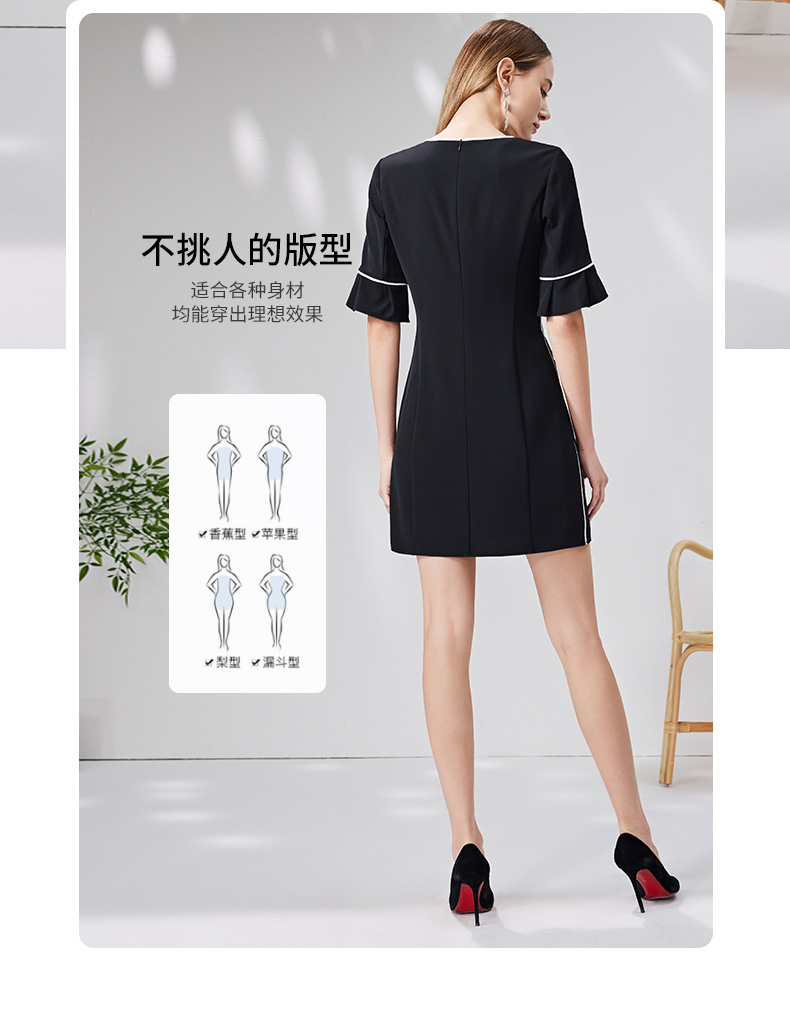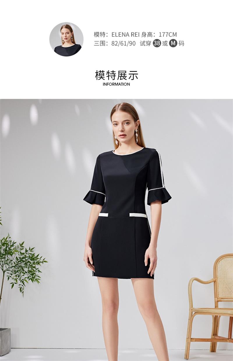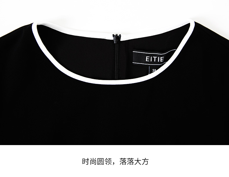 EITIE爱特爱时尚撞色喇叭袖收腰显瘦短裙连衣裙通勤简约夏新款B07174