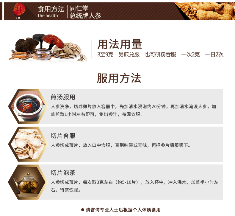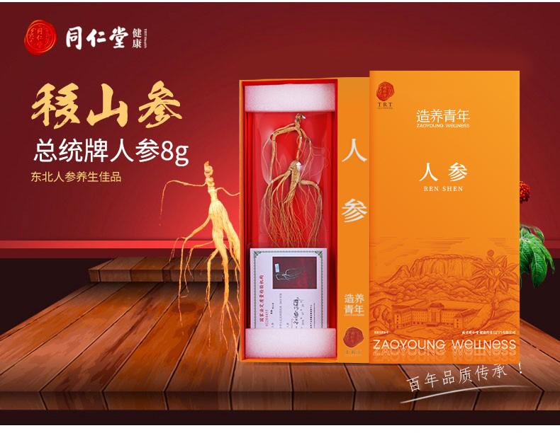 【正宗同仁堂品牌】北京同仁堂 人参-8g/盒 移山参 送礼盒 长白山原产 防震防碎SY