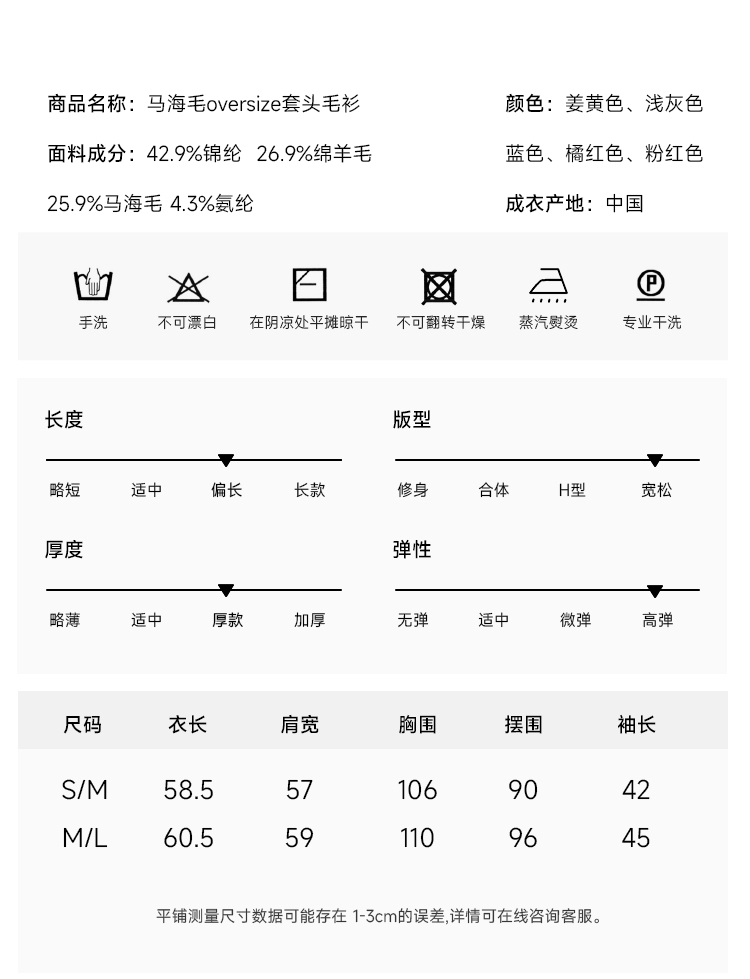 重磅13支超幼马海毛 拉毛质感温暖慵懒oversize宽松 套头毛衫FJ480623O