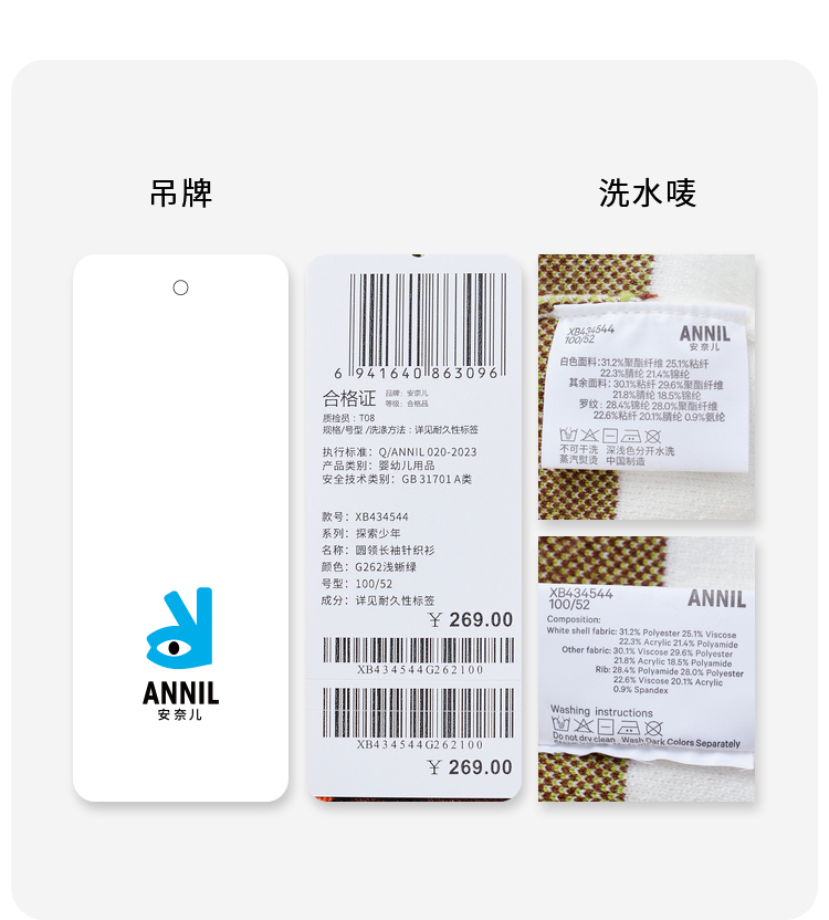 男童多彩撞色暖毛衣安奈儿童装实体店同款XB434544