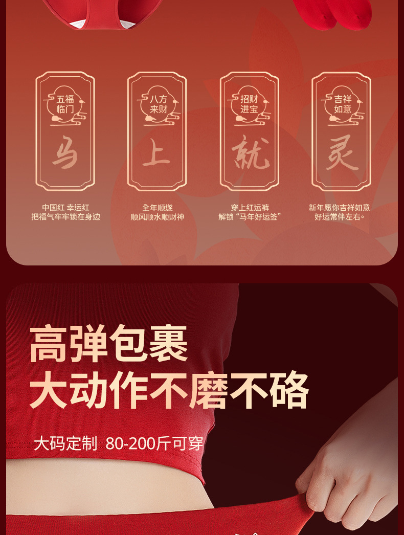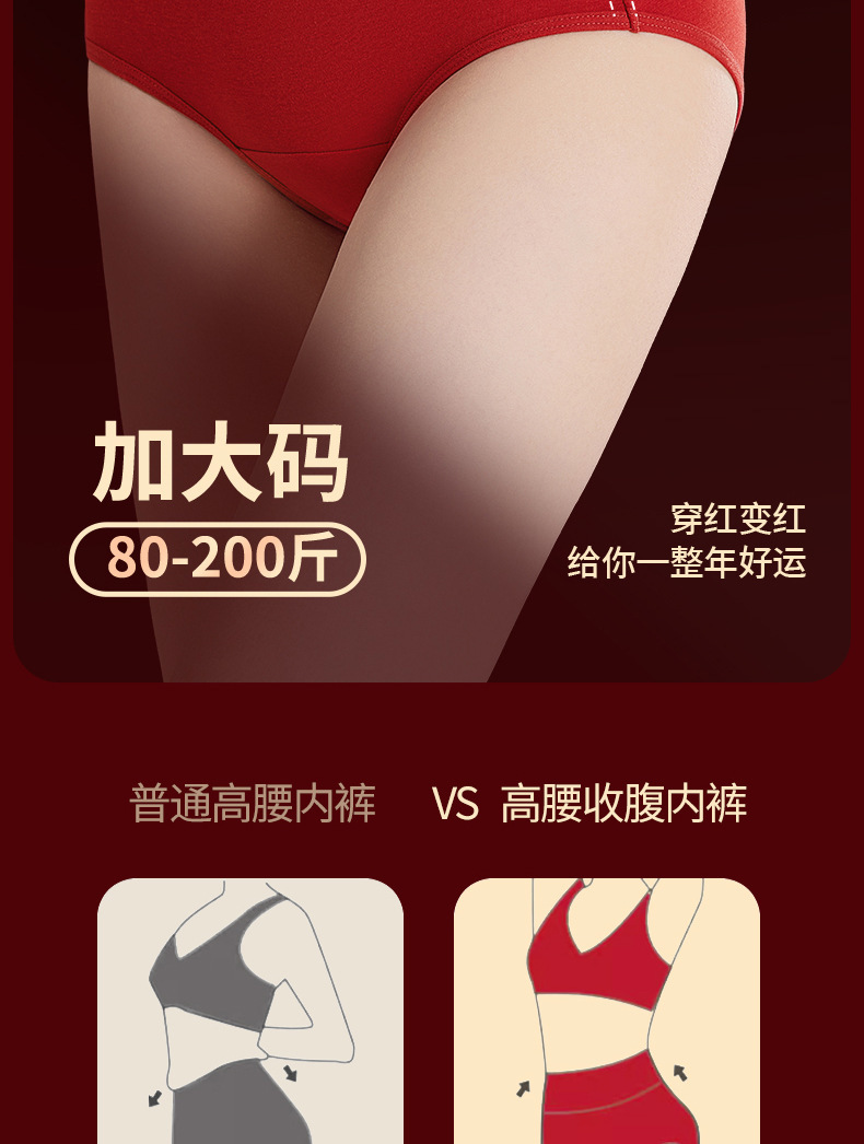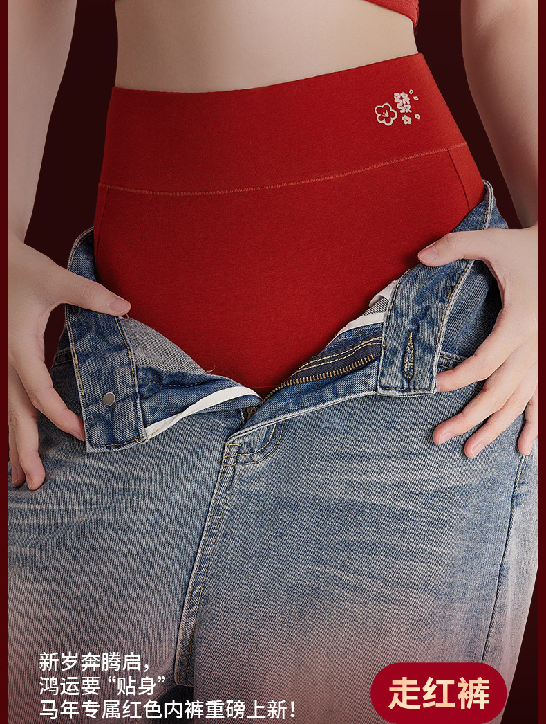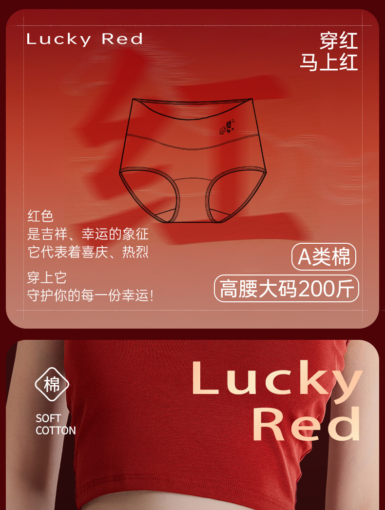 送红袜送好运【鸿运加持好运随身❗️高级喜庆不俗气】本命年200斤大红纯棉大码高腰收腹纯棉女内裤2026马年女士三角裤。ja