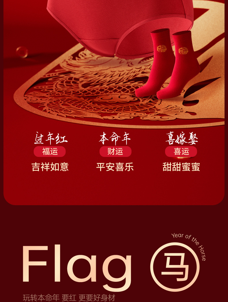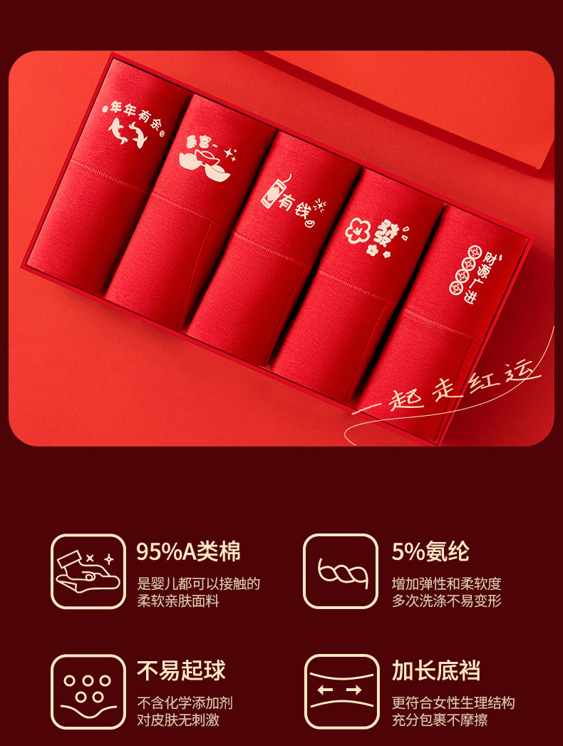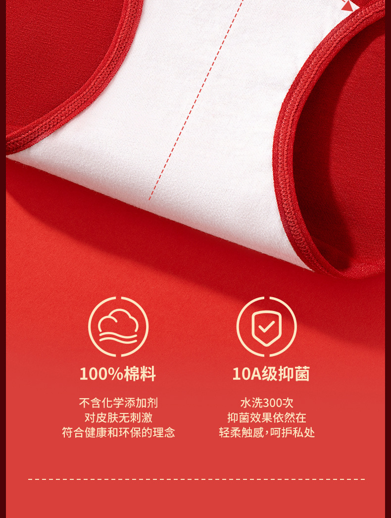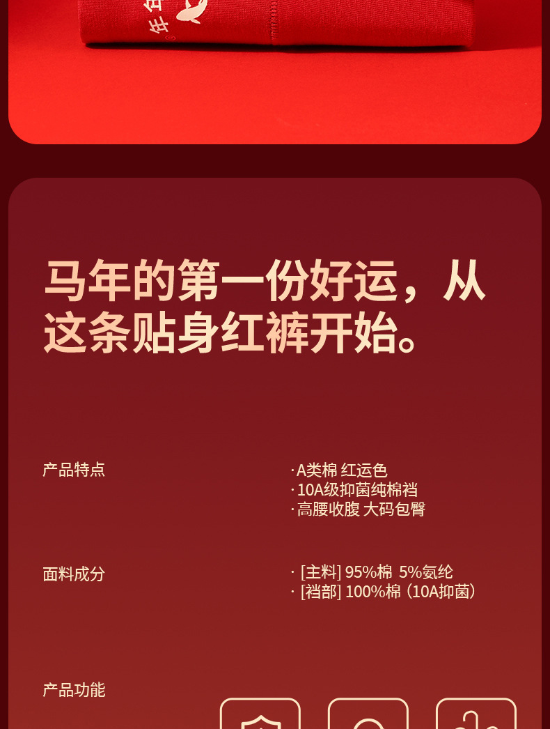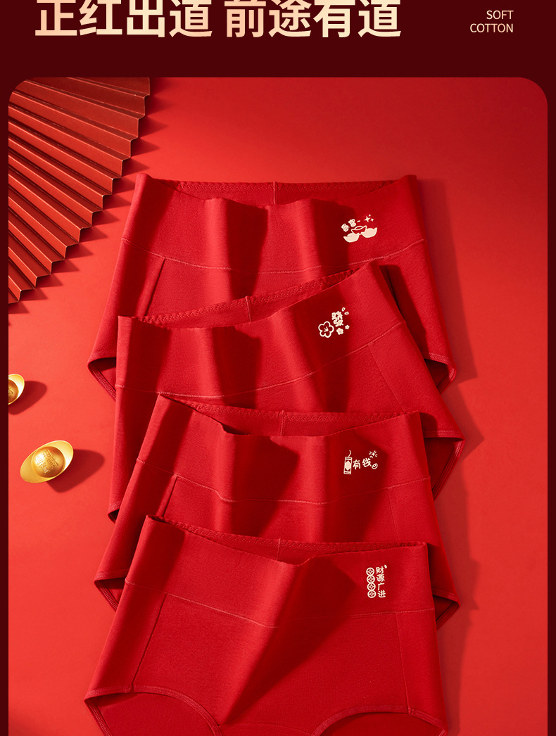 送红袜送好运【鸿运加持好运随身❗️高级喜庆不俗气】本命年200斤大红纯棉大码高腰收腹纯棉女内裤2026马年女士三角裤。ja
