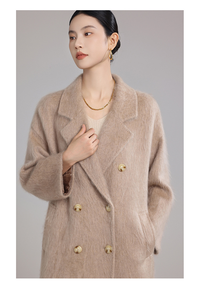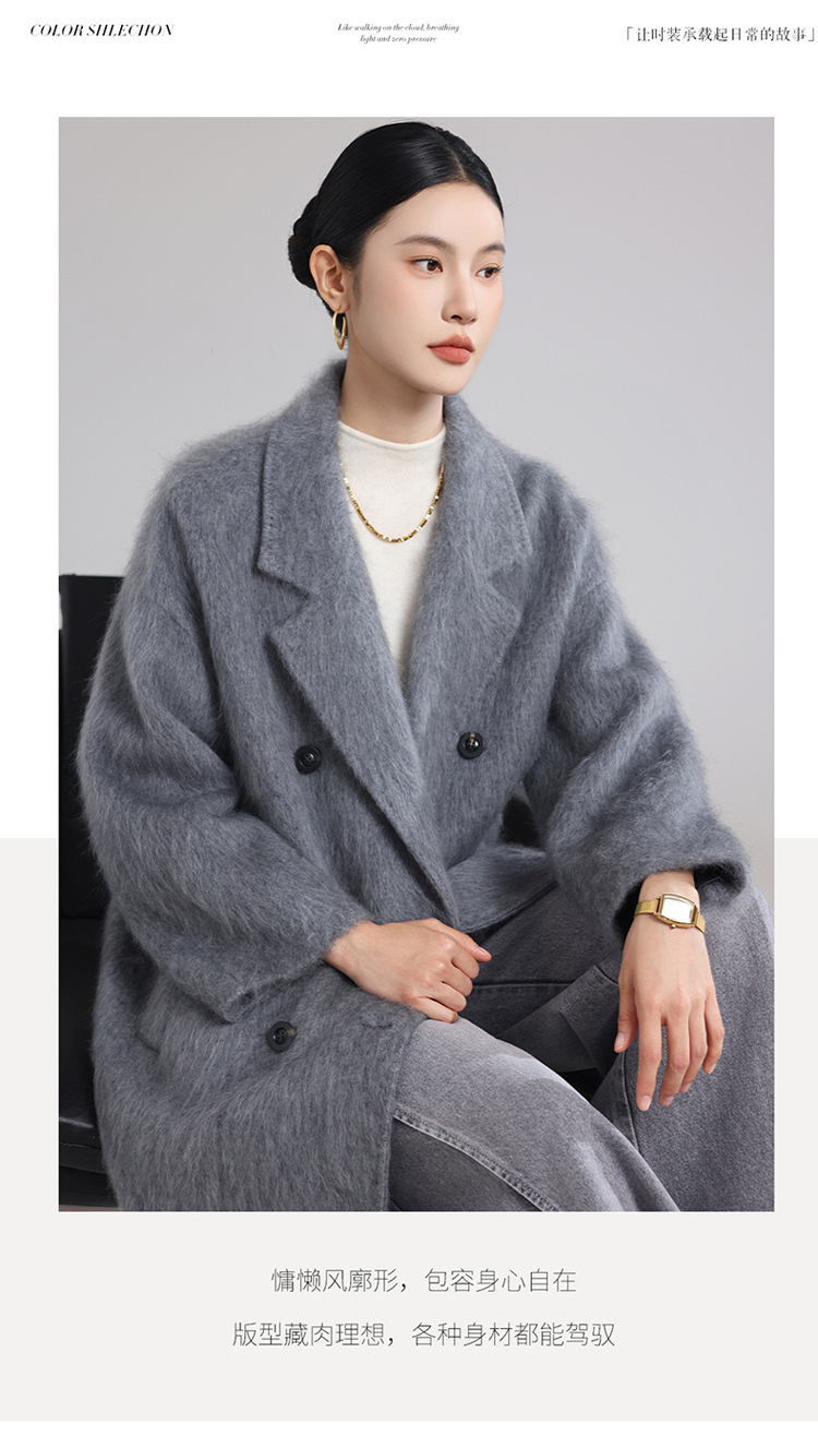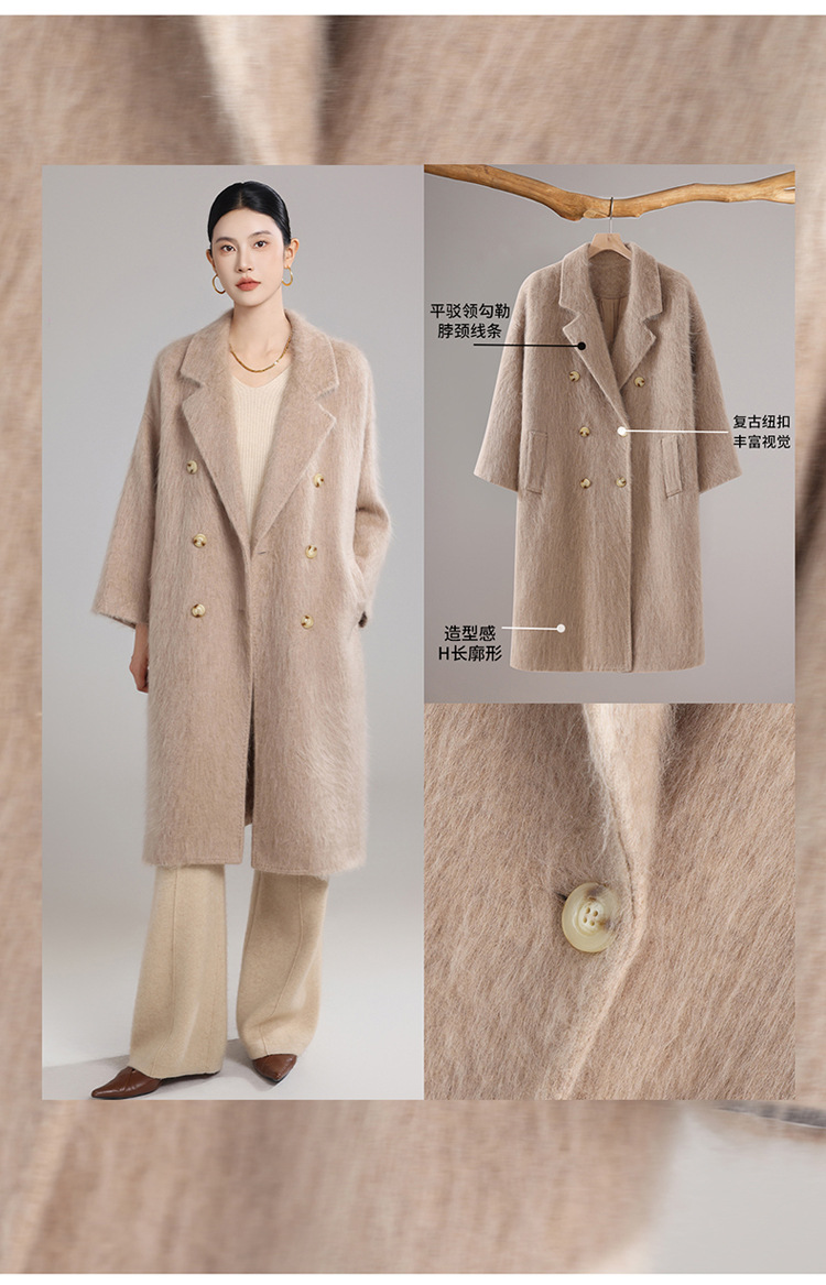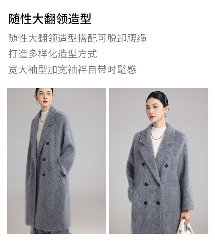 ZZ 701Z拉毛羊绒大衣西装领温柔长毛羊毛呢外套