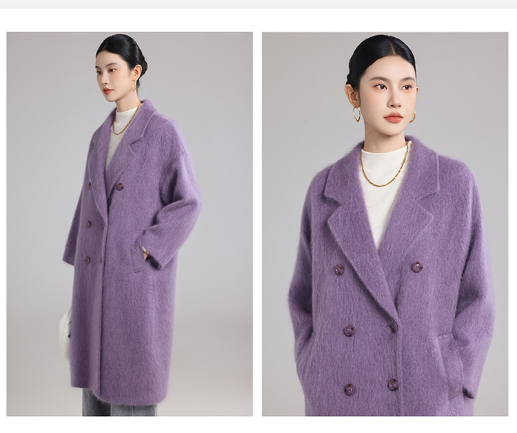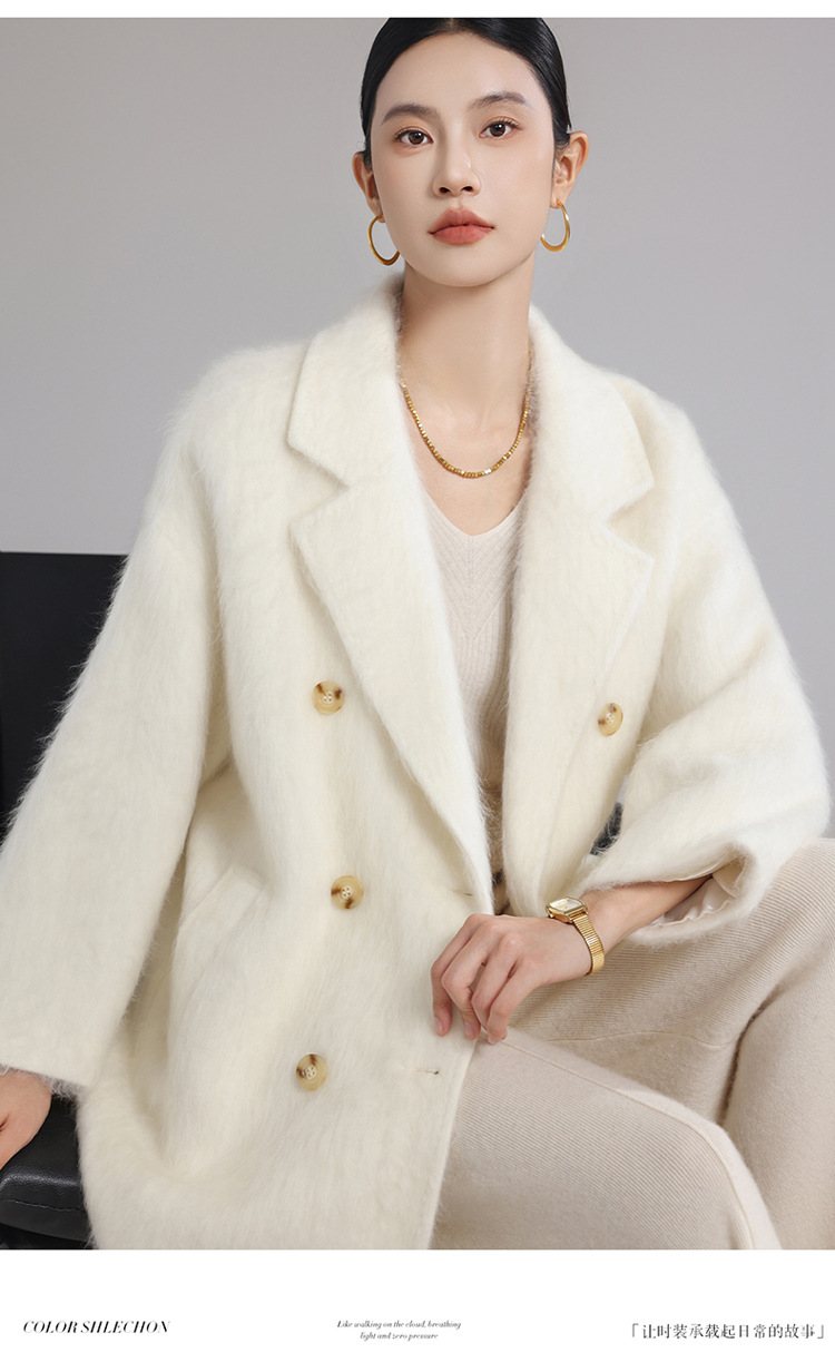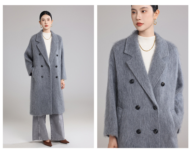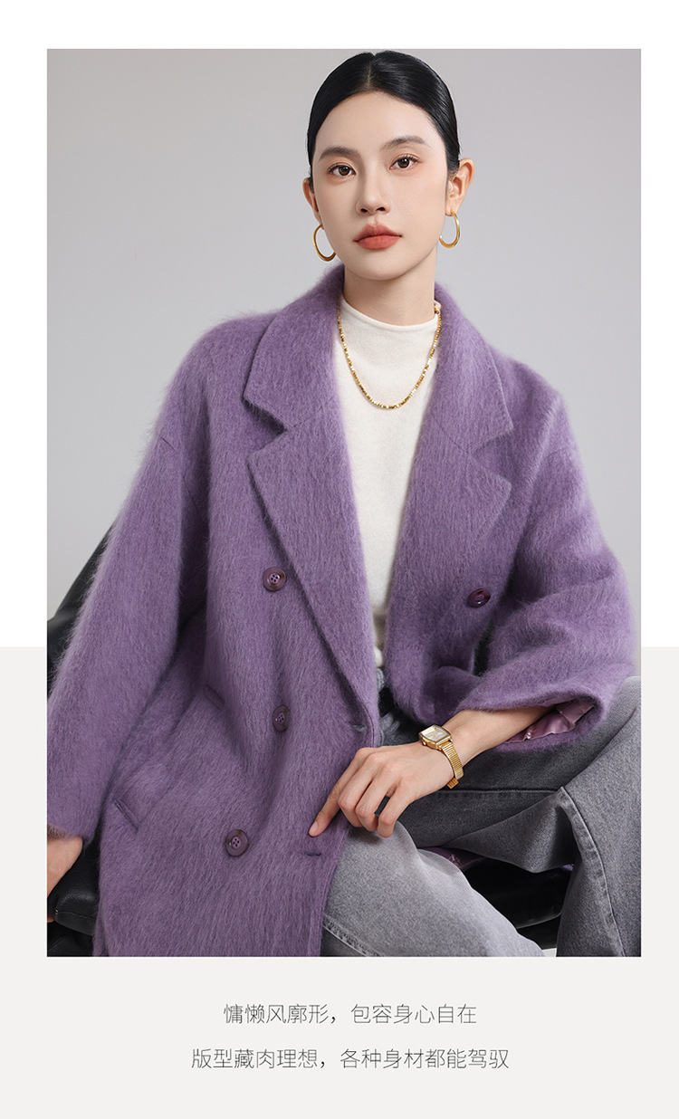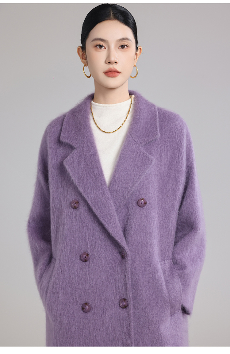 ZZ 701Z拉毛羊绒大衣西装领温柔长毛羊毛呢外套