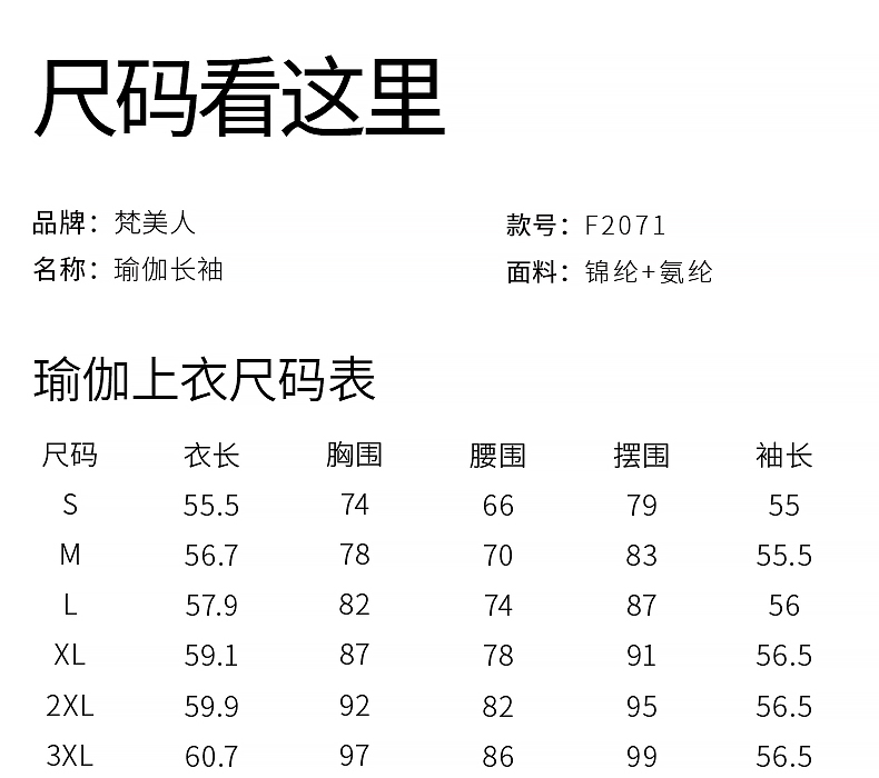 梵美人 F2071Y 瑜伽长袖 一体胸垫 美人条