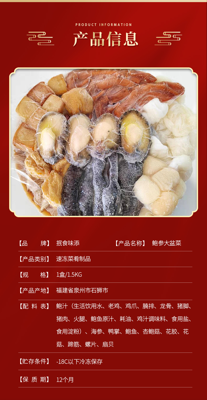 抿食味添鲍参大盆菜/1盒(1.5kg,固形物≥30%)生产日期:25年9月补单专用