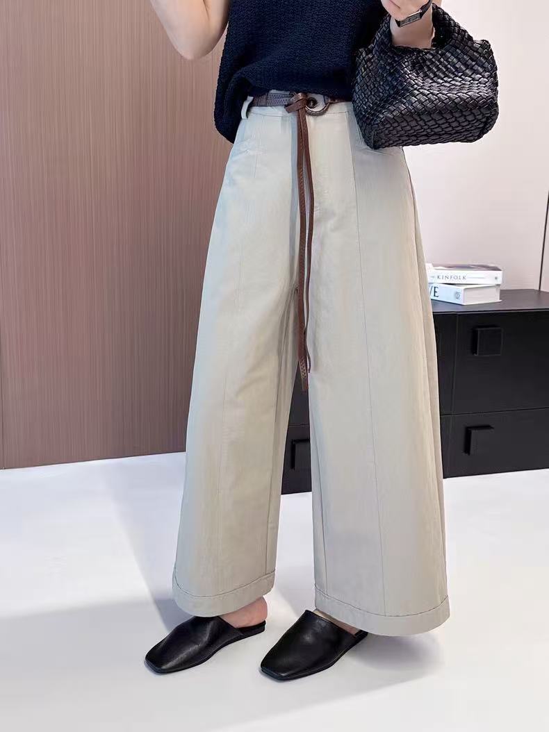 【秋上新】裤型超棒-面料有弹力 爆款米灰显瘦百搭休闲裤-喜出