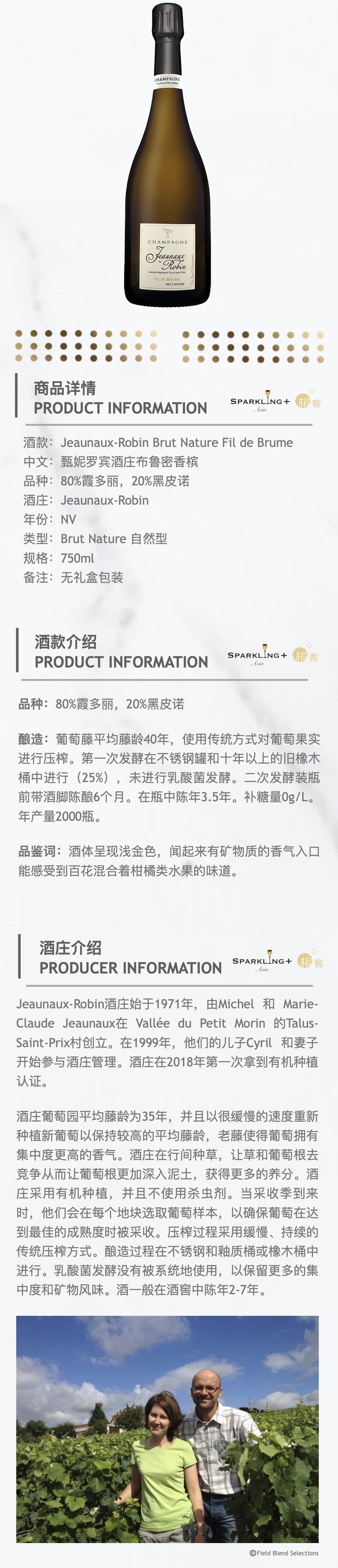 Jeaunaux-Robin Brut Nature Fil de Brume 甄妮罗宾酒庄布鲁密香槟