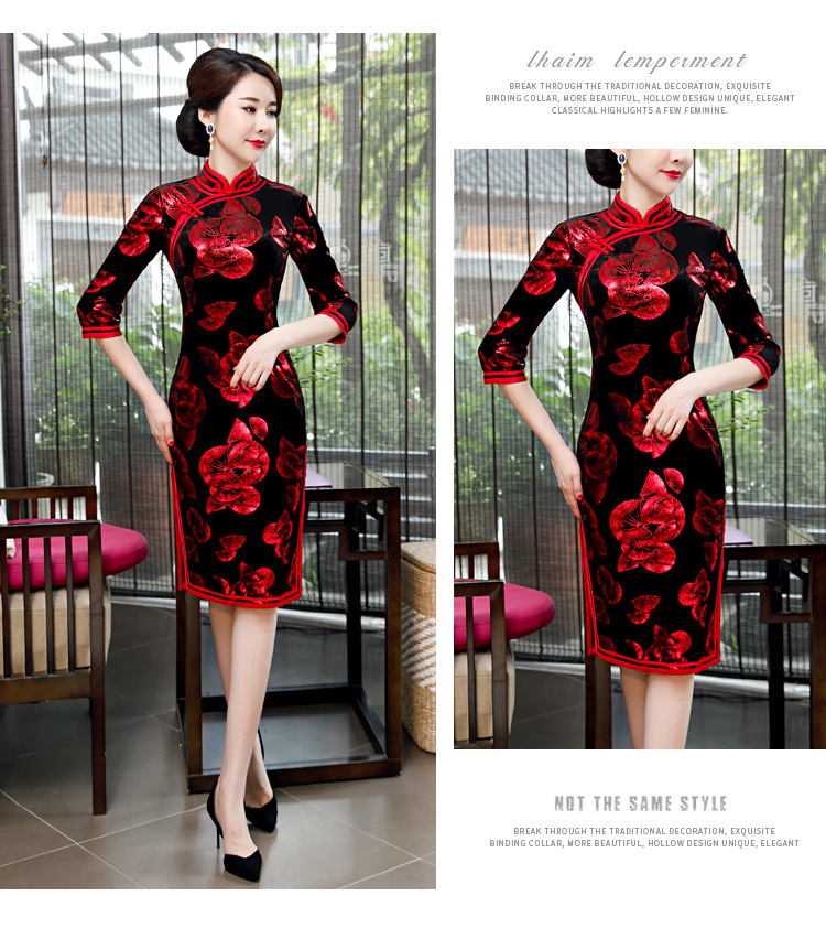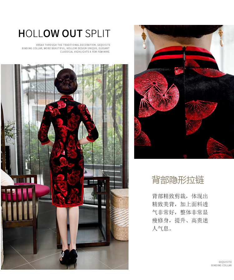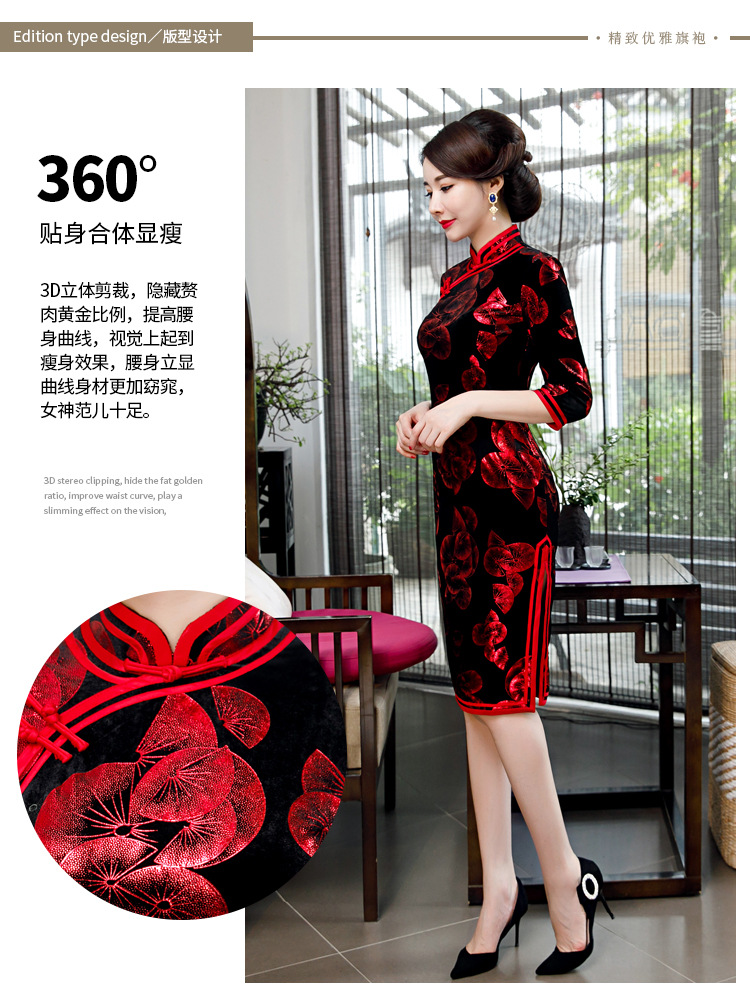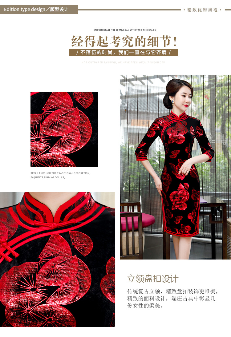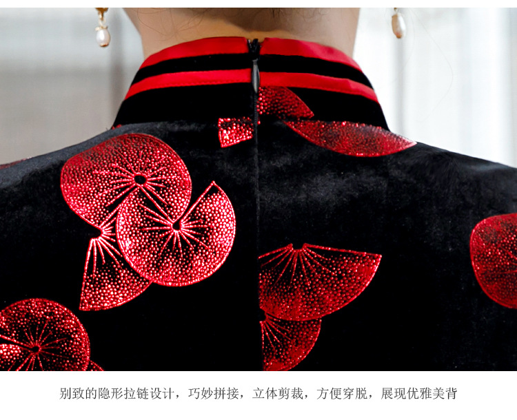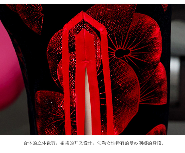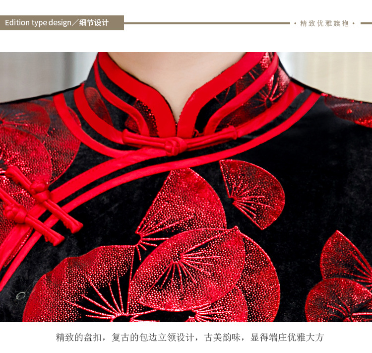 YX-0200金丝绒中国风气质名媛日常优雅修身旗袍