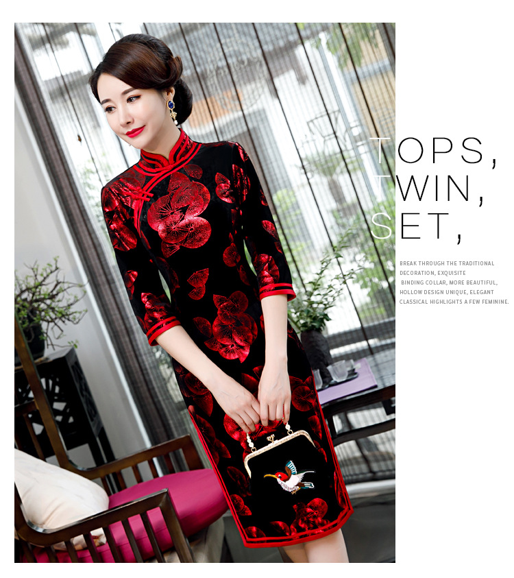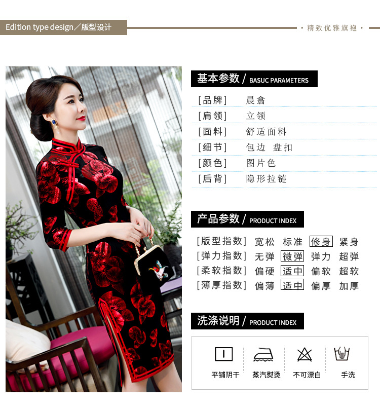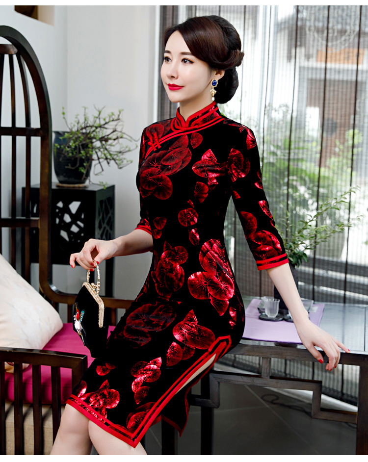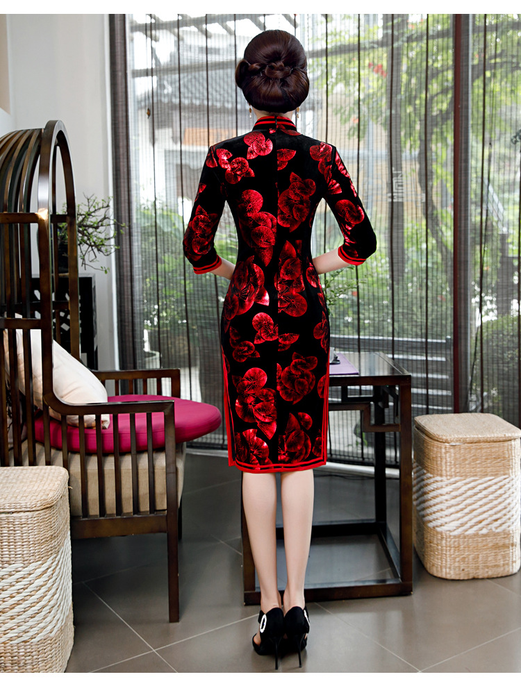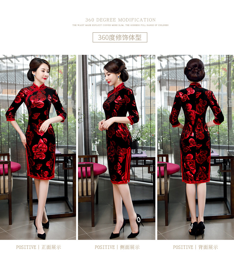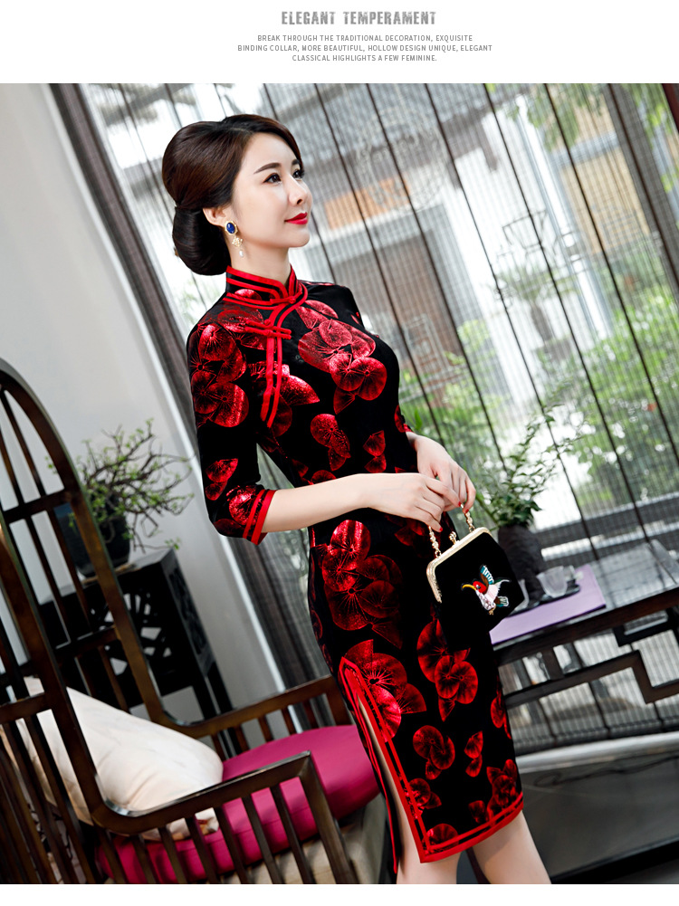 YX-0200金丝绒中国风气质名媛日常优雅修身旗袍
