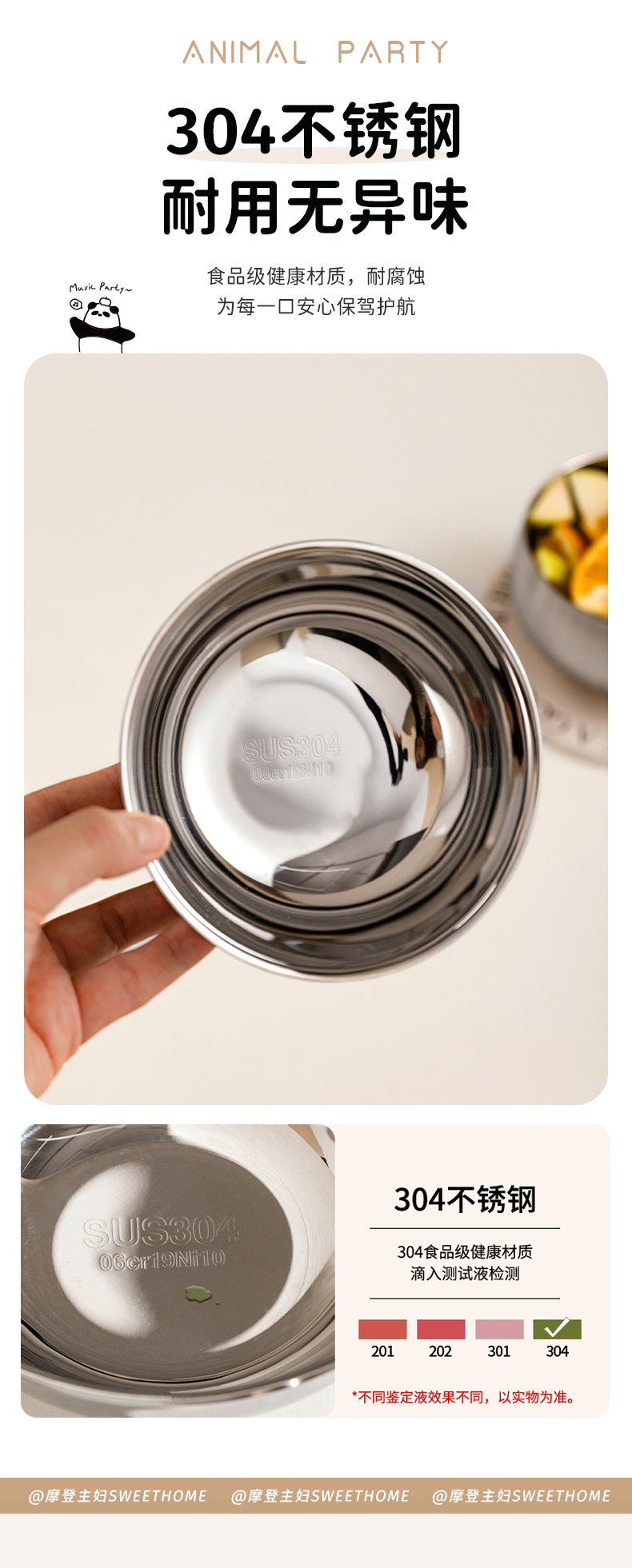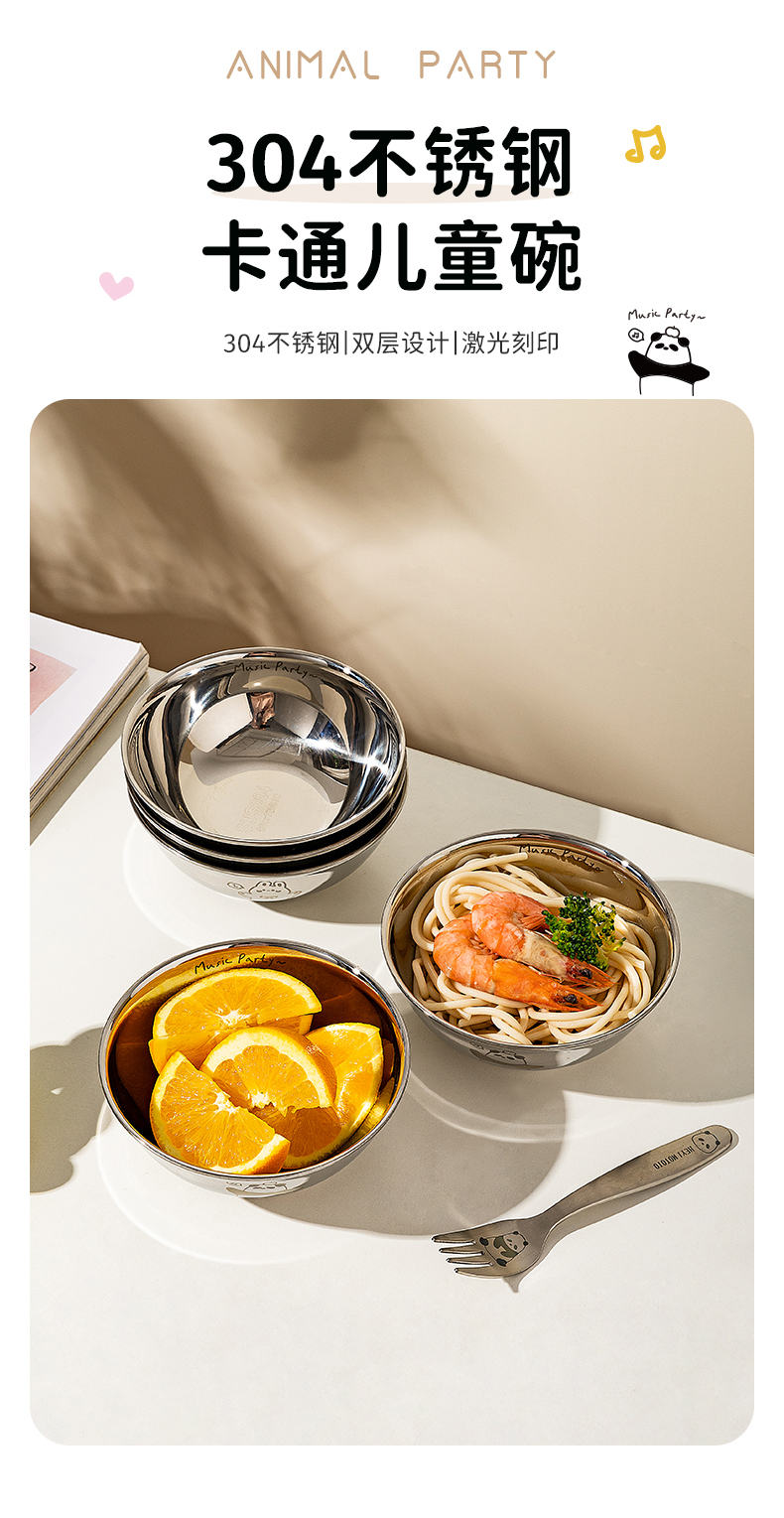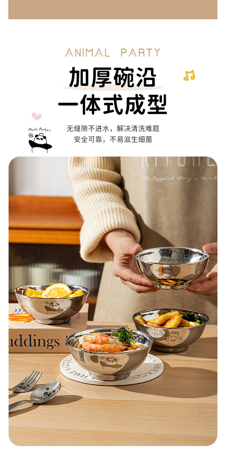 摩登主妇动物派对不锈钢碗儿童饭碗家用餐具碗具宝宝碗吃饭专用碗