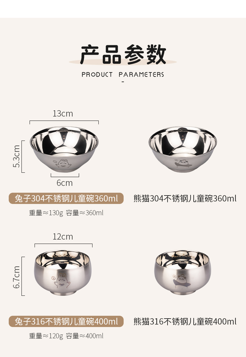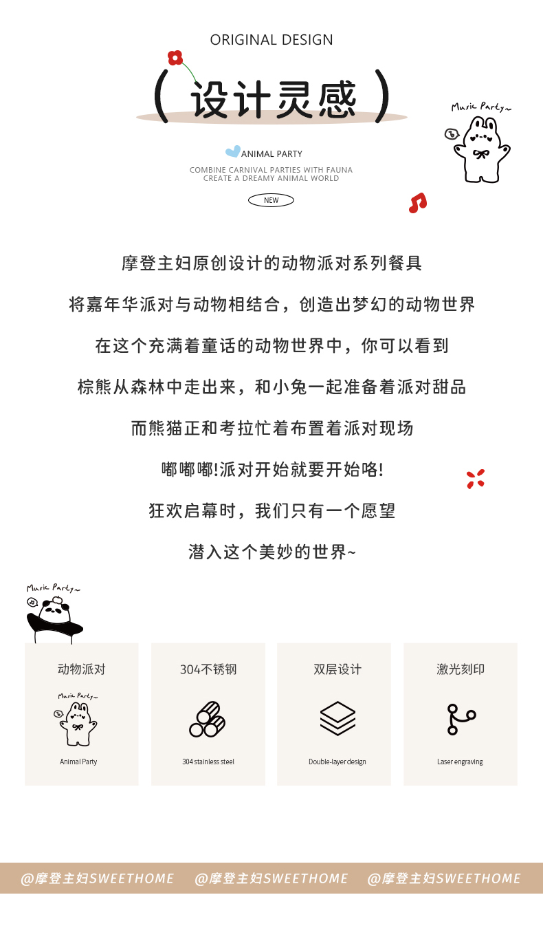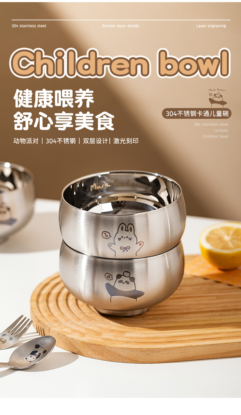 摩登主妇动物派对不锈钢碗儿童饭碗家用餐具碗具宝宝碗吃饭专用碗