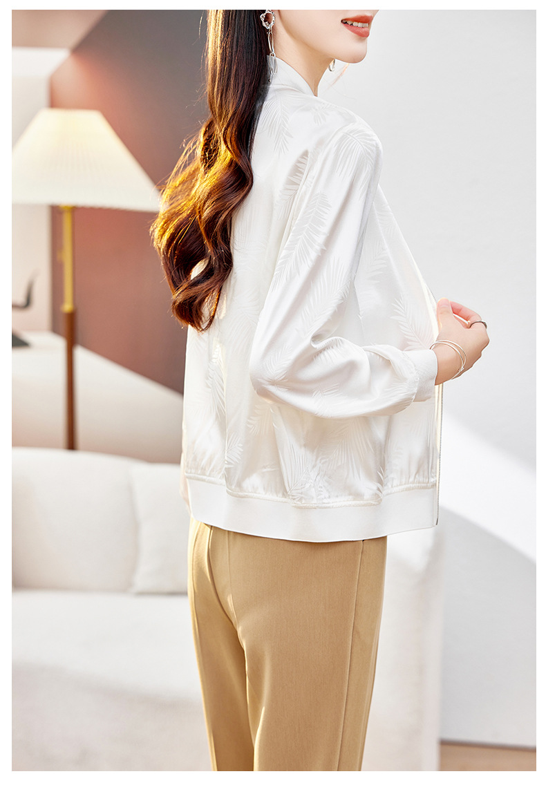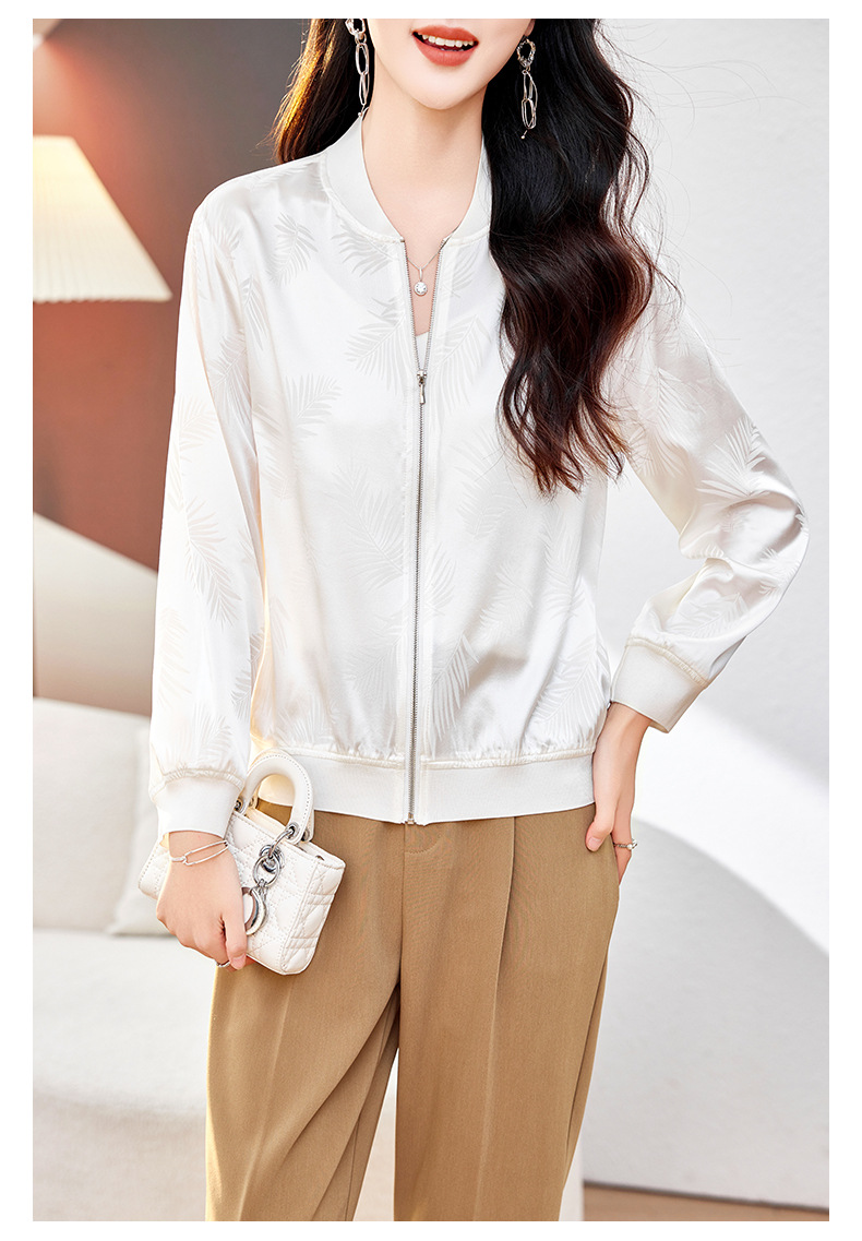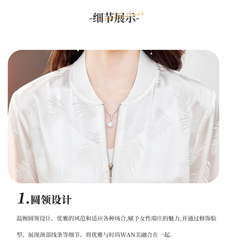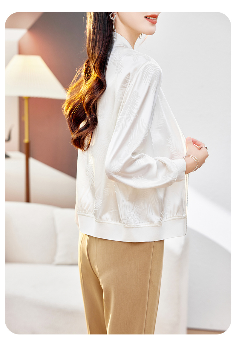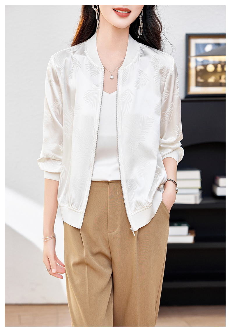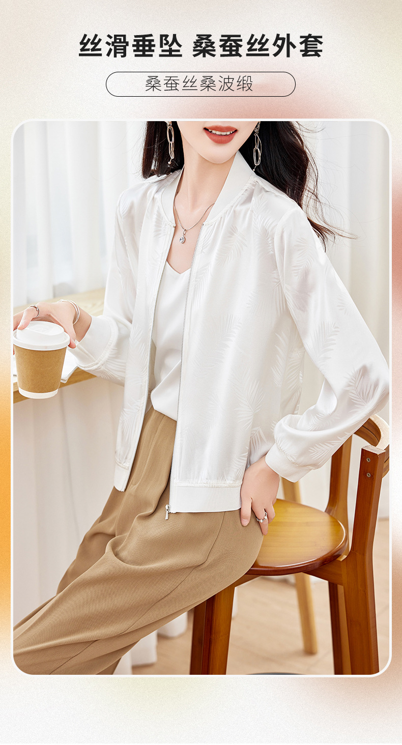 丁摩重磅桑蚕丝外套女春季夹克衫防晒真丝棒球服开衫宽松大码休闲上衣AL698