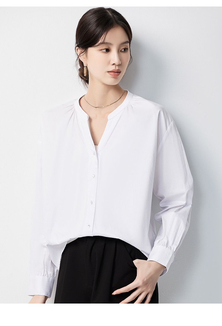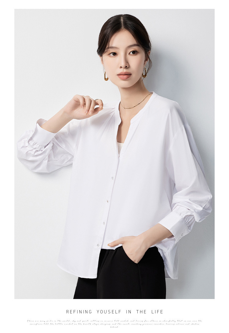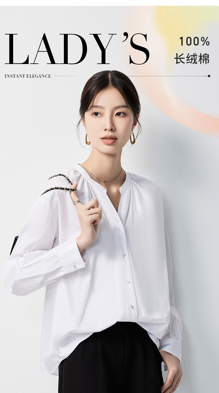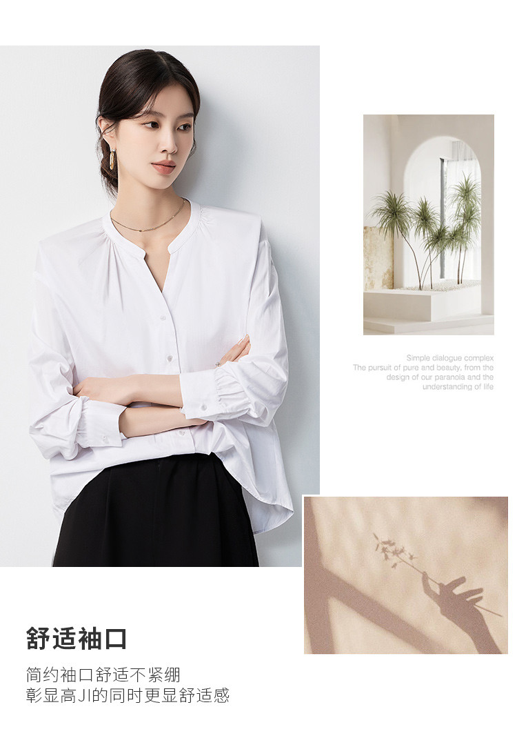 【100棉&舒适V领】罗蒙女士长袖衬衫简约百搭优雅气质衬衣女