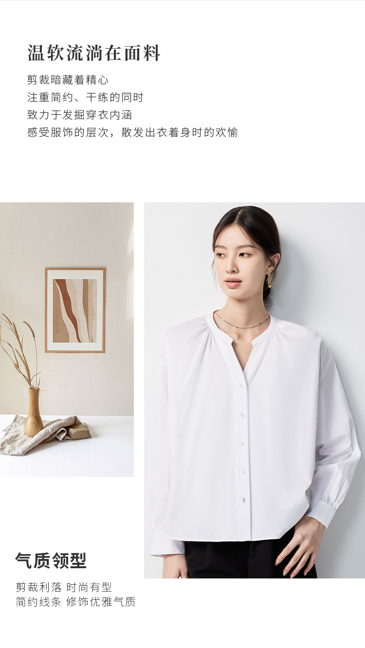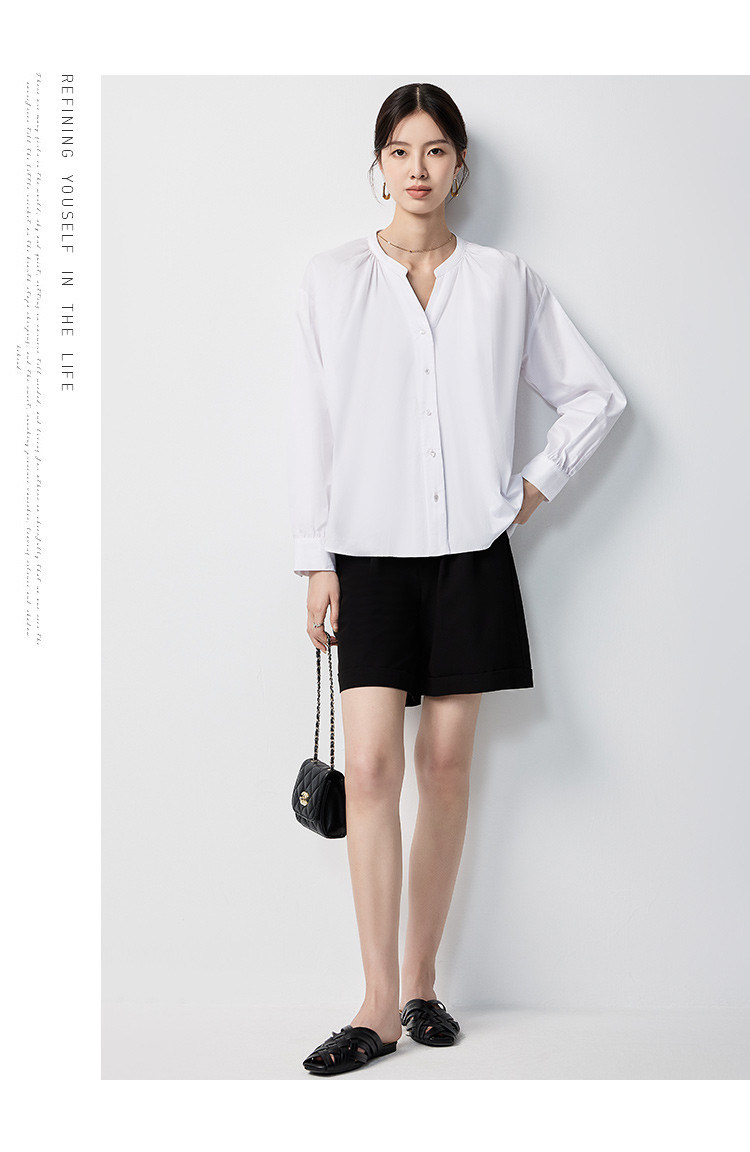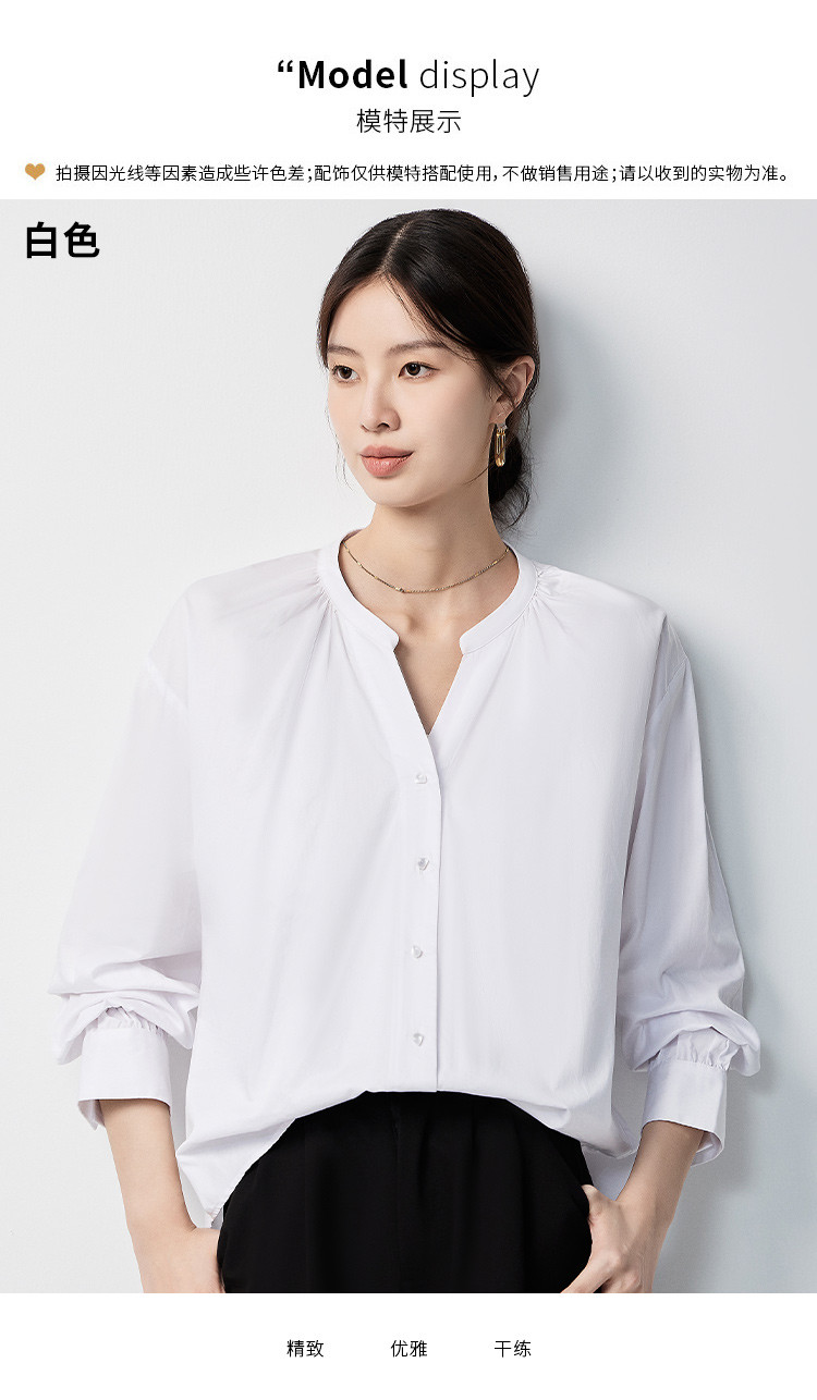 【100棉&舒适V领】罗蒙女士长袖衬衫简约百搭优雅气质衬衣女