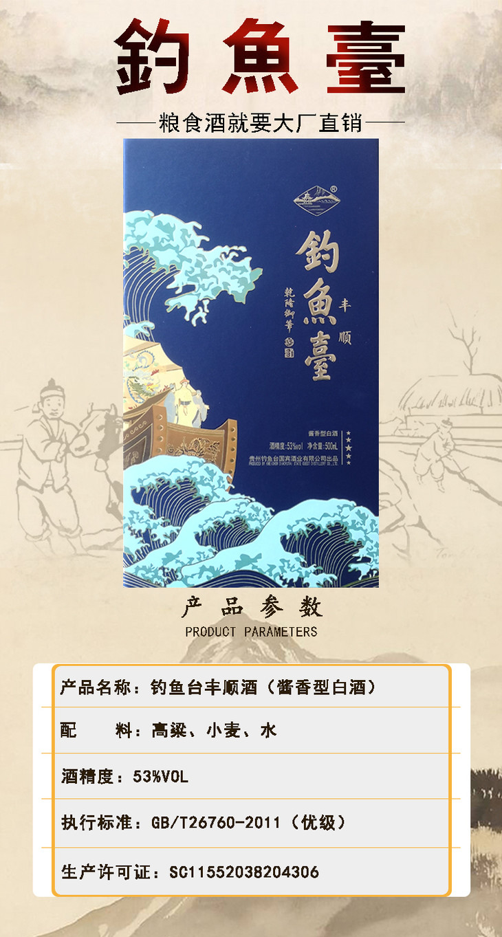 2021年钓鱼台丰顺酒酱香型白酒53度500ml单瓶装